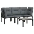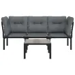 Elegantna in sodobna vrtna sedežna garnitura je popolna izbira za obedovanje ali sproščanje na vašem vrtu. Vremensko odporen material: PE ratan, znan tudi kot poli ratan, je odporen na vremenske vplive in enostaven za čiščenje. Na zunaj ostane lep dolgo časa. Ponuja odlično kakovost, priročnost in estetski videz. Trpežen in stabilen okvir: Prašno premazan jeklen okvir sedežne garniture zagotavlja trdnost in stabilnost.Modularna zasnova: Zunanja sedežna garnitura je prilagodljiva in enostavna za premikanje, zato jo lahko kombinirate z drugimi modularnimi segmenti iz spletne trgovine in ustvarite svoj osebni sestav vrtne sedežne garniture! Udobna izkušnja sedenja: Naslonjalo za hrbet zagotavlja dodatno udobje pri sedenju na stolu. Poleg tega debelo podložene blazine zagotavljajo udobje med sedenjem.Praktična miza: Robustna mizna plošča klubske mizice je odlična za odlaganje hrane, pijače in okrasnih stvari. Dobro je vedeti:Za čim lažjo montažo je vsakemu izdelku priložen priročnik.Opomba:Če želite, da vaše zunanje pohištvo ostane lepo, vam priporočamo, da ga zaščitite z vodoodporno prevleko.Miza:Material: DPC, prašno barvano jekloDimenzije: 55 x 55 x 31 cm (D x Š x V)Kotni stol:Barva: ČrnaMaterial: PE ratan, tekstilen, prašno lakirano jekloDimenzije: 62 x 62 x 68 cm (Š x G x V)Velikost sedeža: 55 x 55 cm (Š x G)Višina sedeža, merjena od tal: 31 cmMaksimalna nosilnost (na sedež): 110 kgEnojni stol:Barva: ČrnaMaterial: PE ratan, tekstilen, prašno lakirano jekloDimenzije: 55 x 62 x 68 cm (Š x G x V)Velikost sedeža: 55 x 55 cm (Š x G)Višina sedeža, merjena od tal: 31 cmMaksimalna nosilnost: 110 kgBlazina:Barva blazin: Temno sivaMaterial prevlek za blazine: Tkanina (100 % poliester)Polnilo sedežne blazine: PenaPolnilo hrbtne blazine: PP bombažDimenzije hrbtne blazine: 55 x 45 x 12 cm (D x Š x D)Dimenzije sedežne blazine: 55 x 55 x 3,5 cm (D x Š x D)Paket vsebuje:2 x Kotni stol1 x Enojni stol1 x Miza3 x Blazina za sedež5 x Blazina za hrbet Največ 110 kg na sedež. Zavedajte se nevarnosti odprtega ognja in drugih virov močne vročine v bližini izdelka.