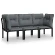Elegantna in sodobna vrtna sedežna garnitura je popolna izbira za obedovanje ali sproščanje na vašem vrtu. Vremensko odporen material: PE ratan, znan tudi kot poli ratan, je odporen na vremenske vplive in enostaven za čiščenje. Na zunaj ostane lep dolgo časa. Ponuja odlično kakovost, priročnost in estetski videz. Trpežen in stabilen okvir: Prašno premazan jeklen okvir sedežne garniture zagotavlja trdnost in stabilnost. Udobna izkušnja sedenja: Naslonjalo za hrbet zagotavlja dodatno udobje pri sedenju na vrtnem kavču. Poleg tega debelo podložene blazine zagotavljajo udobje med sedenjem.Modularna zasnova: Zunanja sedežna garnitura je prilagodljiva in enostavna za premikanje, zato jo lahko kombinirate z drugimi modularnimi segmenti iz spletne trgovine in ustvarite svoj osebni sestav vrtne sedežne garniture! Dobro je vedeti:Za čim lažjo montažo je vsakemu izdelku priložen priročnik.Opomba:Če želite, da vaše zunanje pohištvo ostane lepo, vam priporočamo, da ga zaščitite z vodoodporno prevleko.Kotni stol:Barva: ČrnaMaterial: PE ratan, tekstilen, prašno lakirano jekloDimenzije: 62 x 62 x 68 cm (Š x G x V)Velikost sedeža: 55 x 55 cm (Š x G)Višina sedeža, merjena od tal: 31 cmMaksimalna nosilnost (na sedež): 110 kgEnojni stol:Barva: ČrnaMaterial: PE ratan, tekstilen, prašno lakirano jekloDimenzije: 55 x 62 x 68 cm (Š x G x V)Velikost sedeža: 55 x 55 cm (Š x G)Višina sedeža, merjena od tal: 31 cmMaksimalna nosilnost: 110 kgBlazina:Barva blazin: Temno sivaMaterial prevlek za blazine: Tkanina (100 % poliester)Polnilo sedežne blazine: PenaPolnilo hrbtne blazine: PP bombažDimenzije hrbtne blazine: 55 x 45 x 12 cm (D x Š x D)Dimenzije sedežne blazine: 55 x 55 x 3,5 cm (D x Š x D)Paket vsebuje:2 x Kotni stol1 x Enojni stol3 x Blazina za sedež5 x Blazina za hrbet Maksimalna teža na sedež: 110 kg. Bodite pozorni na tveganje odprtega ognja in druge vire močne toplote v bližini izdelka.