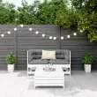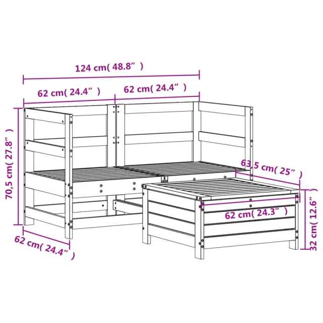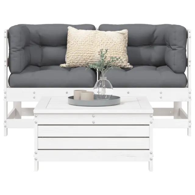Ta lesena vrtna sedežna garnitura z letvicami bo odličen dodatek za vaš vrt, verando ali teraso za prijetno druženje z družino ali prijatelji. Trpežen in vzdržljiv material: Trdna borovina je znana po svoji trdnosti in trajnosti. Njeni ravni vzorci in značilni vozli prispevajo k rustikalnemu šarmu. Dobro prezračevanje in brez nabiranja vode: Letvice spodbujajo optimalen pretok zraka in učinkovito preprečujejo nabiranje vode. S tem je zagotovljeno suho in udobno sedenje. Vsestranska uporaba: Vrtni podstavek za noge se ne uporablja le za sedenje ali sproščanje nog, temveč tudi kot mizica za pijačo, hrano in druge okraske. Modularna zasnova: Ta komplet zunanjega pohištva ima modularno zasnovo, zaradi česar je popolnoma prilagodljiv in enostaven za premikanje, tako da lahko zunanjo garnituro postavite kakor koli želite. Dobro je vedeti:Če želite, da vaše zunanje pohištvo ostane lepo, vam priporočamo, da ga zaščitite z vodoodporno prevleko.Barva: BelaMaterial: Trdna borovinaMaterial letvic: Vezan lesMaksimalna nosilnost (na sedež): 110 kgPriložena blazina: NePotrebno sestavljanje: DaKotni sedež:Dimenzije: 62 x 62 x 70,5 cm (Š x G x V)Višina sedeža: 60 x 60 cm (Š x G)Višina sedeža od tal: 32 cmDimenzije stolčka za noge: 62 x 63,5 x 32 cm (Š x G x V)Paket vsebuje:2 x Kotni sedež 1 x Stolček za noge Največ 110 kg na sedež.