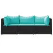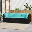 Ta trendovska vrtna sedežna garnitura z elegantno in sodobno zasnovo je odlična izbira za obedovanje ali sprostitev na vašem vrtu. Vremensko odporen material: PE ratan, znan tudi kot poli ratan, je odporen na vremenske vplive in enostaven za čiščenje. Na zunaj ostane lep dolgo časa. Ponuja odlično kakovost, priročnost in estetski videz.Vzdržljiv okvir: Prašno premazan jeklen okvir zagotavlja trdnost zunanje sedežne garniture za vsakodnevno uporabo na prostem.Modularna zasnova: Vrtna sedežna garnitura je prilagodljiva in enostavna za premikanje, zato jo lahko kombinirate z drugimi modularnimi segmenti iz spletne trgovine in ustvarite svoj oseben sestav vrtne sedežne garniture!Udobna izkušnja sedenja: Naslonjalo za hrbet zagotavlja dodatno udobje pri sedenju na vrtnem kavču. Poleg tega debelo podložene blazine zagotavljajo udobje med sedenjem. Dobro je vedeti:Za čim lažjo montažo je vsakemu izdelku priložen priročnik. Opomba:Izdelek je zasnovan samo za uporabo na prostem. Ne shranjujte ga v zaprtih prostorih.Če želite, da vaše zunanje pohištvo ostane lepo, vam priporočamo, da ga zaščitite z vodoodporno prevleko.Barva: ČrnaBarva blazine: ModraMaterial: PE ratan, jeklo s prašnim premazom, blago (100 % poliester)Polnilo: Pena, bombažna vlaknaKotni kavč:Dimenzije (vsak): 63 x 63 x 57,5 cm (Š x G x V)Velikost sedeža: 55 x 55 cm (Š x G)Višina sedeža, merjena od tal: 31 cmDimenzije sedežne blazine: 55 x 55 x 3 cm (Š x G x D)Velikost blazine (velika): 61 x 38 cm (Š x G)Velikost blazine (majhna): 46 x 38 cm (Š x G)Sredinski kavč:Dimenzije: 63 x 63 x 57,5 cm (Š x G x V)Velikost sedeža: 63 x 55 cm (Š x G)Višina sedeža, merjena od tal: 31 cmDimenzije sedežne blazine: 63 x 55 x 3 cm (Š x G x D)Velikost vzglavnika: 68 x 37 cm (Š x G)Nastavljive nogePaket vsebuje:2 x Kotni kavč1 x Sredinski kavč3 x Blazina za sedež5 x Vzglavnik Največ 110 kg na sedež.