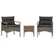 Seti vrtnega pohištva - Vrtna garnitura - Vrtni pohištvo set 3-delna z blazinami siv poli ratan