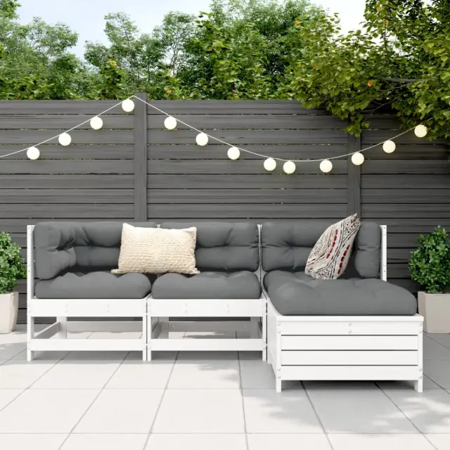 Ta lesena vrtna sedežna garnitura z letvicami bo odličen dodatek za vaš vrt, verando ali teraso za prijetno druženje z družino ali prijatelji. Trpežen in vzdržljiv material: Trdna borovina je znana po svoji trdnosti in trajnosti. Njeni ravni vzorci in značilni vozli prispevajo k rustikalnemu šarmu. Dobro prezračevanje in brez nabiranja vode: Letvice spodbujajo optimalen pretok zraka in učinkovito preprečujejo nabiranje vode. S tem je zagotovljeno suho in udobno sedenje. Vsestranska uporaba: Vrtni podstavek za noge se ne uporablja le za sedenje ali sproščanje nog, temveč tudi kot mizica za pijačo, hrano in druge okraske. Modularna zasnova: Ta komplet zunanjega pohištva ima modularno zasnovo, zaradi česar je popolnoma prilagodljiv in enostaven za premikanje, tako da lahko zunanjo garnituro postavite kakor koli želite. Dobro je vedeti:Če želite, da vaše zunanje pohištvo ostane lepo, vam priporočamo, da ga zaščitite z vodoodporno prevleko.Barva: BelaMaterial: Trdna borovinaMaterial letvic: Vezan lesMaksimalna nosilnost (na sedež): 110 kgPriložena blazina: NePotrebno sestavljanje: DaKotni sedež:Dimenzije: 62 x 62 x 70,5 cm (Š x G x V)Višina sedeža: 60 x 60 cm (Š x G)Višina sedeža od tal: 32 cmSrednji sedež:Dimenzije: 62 x 62 x 70,5 cm (Š x G x V)Višina sedeža: 60 x 60 cm (Š x G)Višina sedeža od tal: 32 cmDimenzije stolčka za noge: 62 x 62 x 32 cm (Š x G x V)Paket vsebuje:2 x Kotni sedež 1 x Sredinski sedež 1 x Stolček za noge Največ 110 kg na sedež.