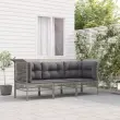 S to vrtno sedežno garnituro uživajte v prijetnem pitju kave v svojem zunanjem prostoru! Je odličen dodatek za vaš vrt in teraso, saj bo naredila trajen vtis! Vremensko odporen material: PE ratan, znan tudi kot poli ratan, je odporen na vremenske vplive in enostaven za čiščenje. Na zunaj ostane lep dolgo časa. Ponuja odlično kakovost, priročnost in estetski videz.Vzdržljiv okvir: Prašno premazani jekleni okvirji zagotavljajo trdnost zunanje sedežne garniture za vsakodnevno uporabo na prostem.Udobna izkušnja sedenja: Naslonjala za hrbet zagotavljajo dodatno udobje pri sedenju na garnituri za teraso. Poleg tega debelo podložene blazine zagotavljajo udobje med sedenjem.Modularna zasnova: Vsak posamezni kos je prilagodljiv in enostaven za premikanje, zato ga lahko kombinirate z drugimi modularnimi segmenti iz spletne trgovine in ustvarite svoj osebni sestav vrtne sedežne garniture! Opomba:Če želite, da vaše zunanje pohištvo ostane lepo, vam priporočamo, da ga zaščitite z vodoodporno prevleko.Vrtni kotni kavč:Barva: SivaMaterial: PE ratan, jeklen okvir s prašnim premazomDimenzije: 65 x 65 x 75 cm (Š x G x V)Širina sedeža: 55 cmGlobina sedeža: 55 cmVišina sedeža od tal: 32 cmMaksimalna nosilnost: 110 kgZasnova mrežnega tkanjaVrtni sredinski kavč:Barva: SivaMaterial: PE ratan, jeklen okvir s prašnim premazomDimenzije: 55 x 65 x 75 cm (Š x G x V)Širina sedeža: 55 cmGlobina sedeža: 55 cmVišina sedeža od tal: 32 cmMaksimalna nosilnost: 110 kgZasnova mrežnega tkanjaBlazina:Barva: Temno sivaMaterial: Blago (100 % poliester)Polnilo sedežne blazine: PenaPolnilo hrbtne blazine: bombažna vlaknaDimenzije sedežne blazine: 55 x 55 x 3 cm (D x Š x D)Dimenzije hrbtne blazine (velika): 56 x 39 x 10 cm (D x Š x D)Dimenzije hrbtne blazine (majhna): 48 x 39 x 10 cm (D x Š x D)Potrebno sestavljanje: DaPaket vsebuje:2 x Vrtni kotni kavč1 x Vrtni srednji kavč3 x Blazina za sedež2 x Hrbtna blazina (velika)2 x Hrbtna blazina (majhna) Maksimalna teža na sedež: 110 kg. Bodite pozorni na tveganje odprtega ognja in druge vire močne toplote v bližini izdelka.