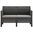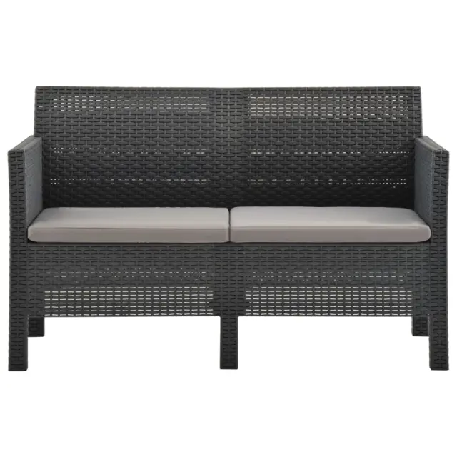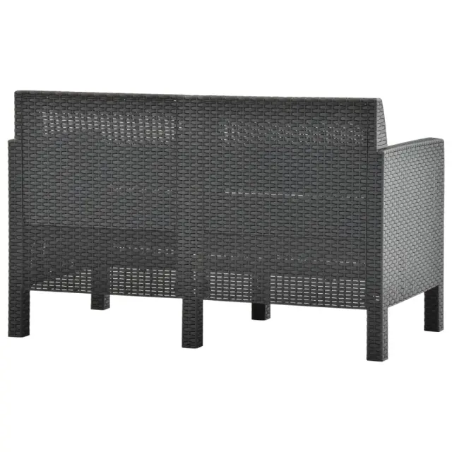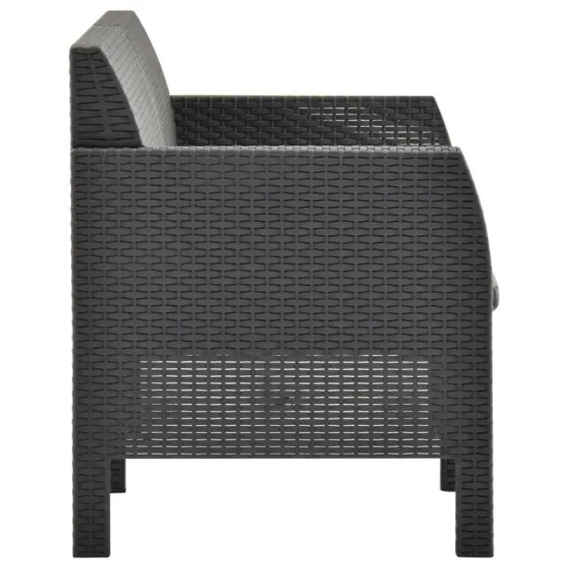 S to vrtno sedežno garnituro lahko uživate v sproščanju na prostem. Ta komplet zunanjega pohištva ima lahko konstrukcijo iz polipropilena, zato je preprost za čiščenje in primeren za uporabo na prostem. Priložena UV-odporna blazina, ergonomsko naslonjalo za hrbet in zaobljeno naslonjalo za roke nudijo dodatno udobje med sedenjem. Prevleko blazine lahko odstranite in operete. Miza je idealna za odlaganje hrane in pijače. Opomba: Če želite podaljšati življenjsko dobo svojega vrtnega pohištva, priporočamo redno čiščenje. Pohištva ne puščajte na prostem brez zaščite.Čiščenje: Uporabite blago milnicoShranjevanje: Če je mogoče, shranite v hladnem in suhem notranjem prostoru. Če bo izdelek shranjen zunaj, ga zaščitite z vodoodpornim pokrivalom. Po dežju ali snegu odstranite odvečno vodo ali sneg z ravnih površin. Omogočite zadosten pretok zraka, da preprečite poškodbe, povezane z vlago.Barva: AntracitnaMaterial: PP (polipropilen) z izgledom ratanaDimenzije mize: 58 x 58 x 41 cm (Š x G x V)Dimenzije kavča: 122 x 65 x 76 cm (Š x G x V)Višina naslonjala za roke, merjena od tal: 61 cmVišina sedeža, merjena od tal: 36 cmDebelina blazine: 5 cmOdporno na UVPotrebno sestavljanje: DaPaket vsebuje:1 x Miza1 x Kavč dvosed2 x Sedežna blazina
