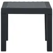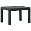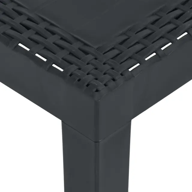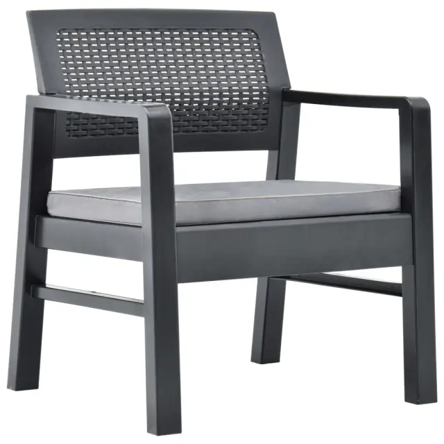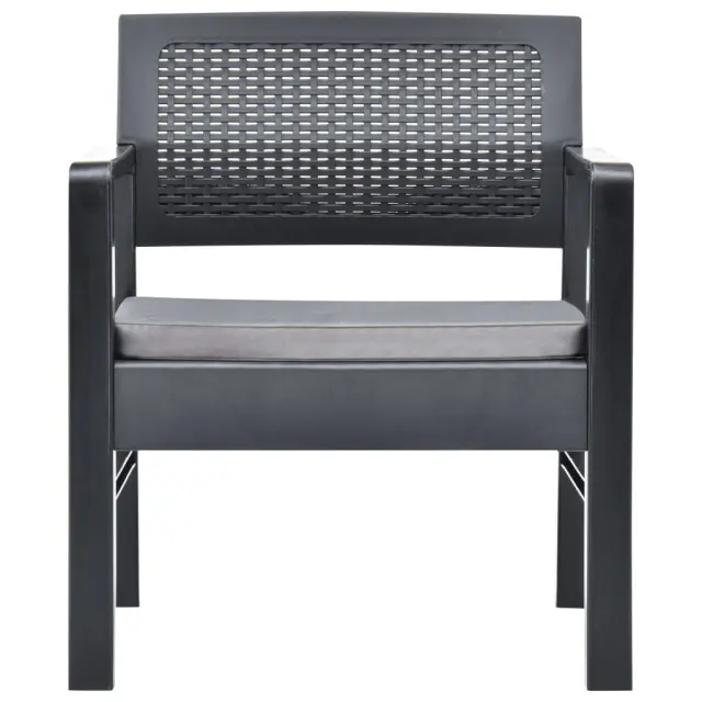 Ta vrtna garnitura je odlična izbira za sproščanje in uživanje v lepem vremenu, za dremanje ali klepetanje z družino ali prijatelji. Vrtna počivalna garnitura je narejena iz plastike, zato je enostavna za čiščenje in stabilna. Miza s trdno površino je idealna za odlaganje hrane in pijače, da bo na dosegu roke. Blazine prispevajo k udobnemu sedenju na stolu.Barva: SivaBarva blazin: AntracitnaMaterial: PlastikaMaterial blazin: Blago (55 % bombaž, 45 % poliester)Dimenzije mize: 59 x 46 x 40 cm (Š x G x V)Dimenzije stola: 63 x 59 x 75 cm (Š x G x V)Debelina blazine: 5 cmPotrebno sestavljanje: DaPaket vsebuje:1 x Miza2 x Stol