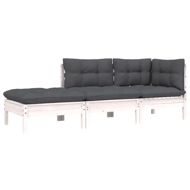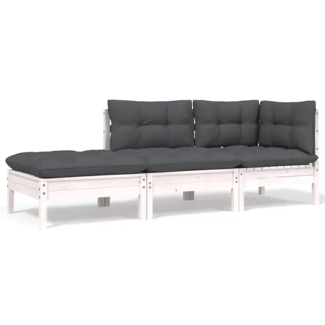 Seti vrtnega pohištva - Vrtna garnitura - Vrtni pohištvo set 3-delna z blazinami bela trdna borovina