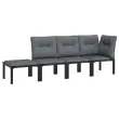 Elegantna in sodobna vrtna sedežna garnitura je popolna izbira za obedovanje ali sproščanje na vašem vrtu. Vremensko odporen material: PE ratan, znan tudi kot poli ratan, je odporen na vremenske vplive in enostaven za čiščenje. Na zunaj ostane lep dolgo časa. Ponuja odlično kakovost, priročnost in estetski videz.Trpežen in stabilen okvir: Prašno premazan jeklen okvir sedežne garniture zagotavlja trdnost in stabilnost. Udobna izkušnja sedenja: Naslonjalo za hrbet zagotavlja dodatno udobje pri sedenju na vrtnem kavču. Poleg tega debelo podložene blazine zagotavljajo udobje med sedenjem.Modularna zasnova: Zunanja sedežna garnitura je prilagodljiva in enostavna za premikanje, zato jo lahko kombinirate z drugimi modularnimi segmenti iz spletne trgovine in ustvarite svoj osebni sestav vrtne sedežne garniture!Praktičen stolček za noge: S priloženim stolčkom za noge se lahko sprostite in dvignete noge. Dobro je vedeti:Za čim lažjo montažo je vsakemu izdelku priložen priročnik.Opomba:Če želite, da vaše zunanje pohištvo ostane lepo, vam priporočamo, da ga zaščitite z vodoodporno prevleko.Kotni stol:Barva: ČrnaMaterial: PE ratan, tekstilen, prašno lakirano jekloDimenzije: 62 x 62 x 68 cm (Š x G x V)Velikost sedeža: 55 x 55 cm (Š x G)Višina sedeža, merjena od tal: 31 cmMaksimalna nosilnost: 110 kgEnojni stol:Barva: ČrnaMaterial: PE ratan, tekstilen, prašno lakirano jekloDimenzije: 55 x 62 x 68 cm (Š x G x V)Velikost sedeža: 55 x 55 cm (Š x G)Višina sedeža, merjena od tal: 31 cmMaksimalna nosilnost (na sedež): 110 kgStolček za noge:Barva: ČrnaMaterial: PE ratan, tekstilen, prašno lakirano jekloDimenzije: 55 x 55 x 34,5 cm (Š x G x V)Velikost sedeža: 55 x 55 cm (Š x G)Višina sedeža, merjena od tal: 31 cmMaksimalna nosilnost: 110 kgBlazina:Barva blazin: Temno sivaMaterial prevlek za blazine: Tkanina (100 % poliester)Polnilo sedežne blazine: PenaPolnilo hrbtne blazine: PP bombažDimenzije hrbtne blazine: 55 x 45 x 12 cm (D x Š x D)Dimenzije sedežne blazine: 55 x 55 x 3,5 cm (D x Š x D)Paket vsebuje:1 x Kotni stol2 x Enojni stol1 x Stolček za noge4 x Blazina za sedež4 x Blazina za hrbet Največ 110 kg na sedež. Zavedajte se nevarnosti odprtega ognja in drugih virov močne vročine v bližini izdelka.