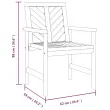 Ta lesena vrtna sedežna garnitura z letvami v obliki ribje kosti je odličen dodatek za vaš vrt in teraso, saj ustvari trajen vtis! Trpežen okvir: Trden akacijev les je čudovit naravni material. Akacijev les je tropski trden les, ki je gost, močan in vzdržljiv.Stabilen okvir: Lesen okvir sedežne garniture zagotavlja trdnost in stabilnost.Udobno sedenje: Jedilni stol je zasnovan z naslonjalom za hrbet in naslonjali za roke in vam tako nudi udobno sedenje.Široka uporaba: Ta zunanja sedežna garnitura s chevron vzorcem je idealna za uporabo v zaprtih prostorih, na vrtu, dvorišču, travniku, balkonu, v restavraciji ipd.Edinstvena zasnova: Lesena sedežna garnitura z značilnim vzorcem diagonalnih letvic pritegne pozornost vsakega opazovalca. Dobro je vedeti:Za čim lažjo montažo je vsakemu izdelku priložen priročnik. Opomba:Če želite, da vaše zunanje pohištvo ostane lepo, vam priporočamo, da ga zaščitite z vodoodporno prevleko.Material: Trden akacijev les z oljnim premazomJedilni stol:Dimenzije: 62 x 59 x 88 cm (Š x G x V)Velikost sedeža: 50 x 47 cm (Š x G)Višina sedeža, merjena od tal: 47 cmVišina naslonjala za roke, merjena od tal: 61 cmMaksimalna nosilnost: 110 kgStranska mizica:Dimenzije: 45 x 45 x 60 cm (Š x G x V)Paket vsebuje:2 x Jedilni stol1 x Stranska mizica Največ 110 kg na sedež.