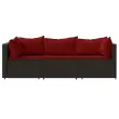 Ta trendovska vrtna sedežna garnitura z elegantno in sodobno zasnovo je odlična izbira za obedovanje ali sprostitev na vašem vrtu. Vremensko odporen material: PE ratan, znan tudi kot poli ratan, je odporen na vremenske vplive in enostaven za čiščenje. Na zunaj ostane lep dolgo časa. Ponuja odlično kakovost, priročnost in estetski videz.Vzdržljiv okvir: Prašno premazan jeklen okvir zagotavlja trdnost zunanje sedežne garniture za vsakodnevno uporabo na prostem.Modularna zasnova: Vrtna sedežna garnitura je prilagodljiva in enostavna za premikanje, zato jo lahko kombinirate z drugimi modularnimi segmenti iz spletne trgovine in ustvarite svoj oseben sestav vrtne sedežne garniture!Udobna izkušnja sedenja: Naslonjalo za hrbet zagotavlja dodatno udobje pri sedenju na vrtnem kavču. Poleg tega debelo podložene blazine zagotavljajo udobje med sedenjem. Dobro je vedeti:Za čim lažjo montažo je vsakemu izdelku priložen priročnik. Opomba:Izdelek je zasnovan samo za uporabo na prostem. Ne shranjujte ga v zaprtih prostorih.Če želite, da vaše zunanje pohištvo ostane lepo, vam priporočamo, da ga zaščitite z vodoodporno prevleko.Barva: RjavaBarva blazin: Cimet rdečaMaterial: PE ratan, jeklo s prašnim premazom, blago (100 % poliester)Polnilo: Pena, bombažna vlaknaKotni kavč:Dimenzije (vsak): 63 x 63 x 57,5 cm (Š x G x V)Velikost sedeža: 55 x 55 cm (Š x G)Višina sedeža, merjena od tal: 31 cmDimenzije sedežne blazine: 55 x 55 x 3 cm (Š x G x D)Velikost blazine (velika): 61 x 38 cm (Š x G)Velikost blazine (majhna): 46 x 38 cm (Š x G)Sredinski kavč:Dimenzije: 63 x 63 x 57,5 cm (Š x G x V)Velikost sedeža: 63 x 55 cm (Š x G)Višina sedeža, merjena od tal: 31 cmDimenzije sedežne blazine: 63 x 55 x 3 cm (Š x G x D)Velikost vzglavnika: 68 x 37 cm (Š x G)Nastavljive nogePaket vsebuje:2 x Kotni kavč1 x Sredinski kavč3 x Blazina za sedež5 x Vzglavnik Največ 110 kg na sedež.