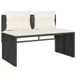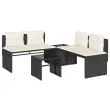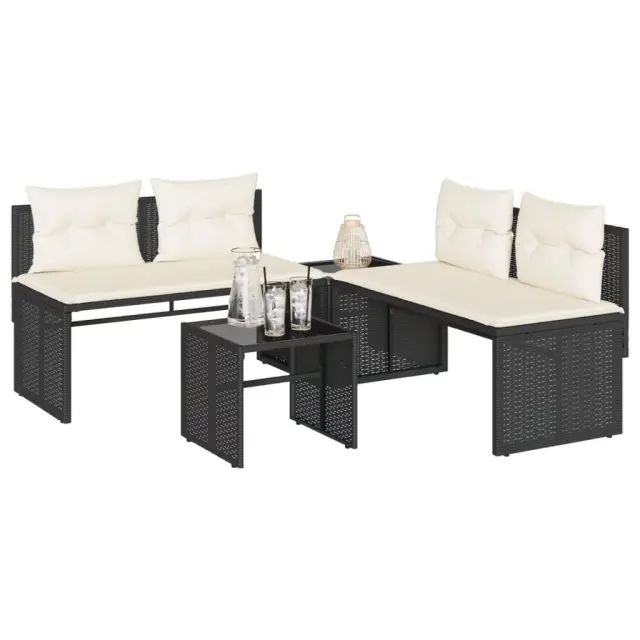 Ta vrtna sedežna garnitura je popoln dodatek za vaše dvorišče, teraso ali verando, saj zagotavlja udoben in vabljiv prostor za klepet z družino in prijatelji ali preprosto za sprostitev in uživanje na prostem. Vzdržljiv material: PE ratan, znan tudi kot poli ratan, je močan sintetični material, ki zahteva malo vzdrževanja in je videti kot naravni ratan. Je lahek, enostaven za čiščenje in se zaradi svoje vzdržljivosti in odpornosti na vremenske vplive pogosto uporablja za zunanje pohištvo.Udobno sedenje: To zunanje pohištvo z debelo oblazinjenimi blazinami zagotavlja udobno sedenje.Odstranljiva in pralna prevleka: Ta sedežna blazina ima odstranljivo prevleko za enostavno pranje in vzdrževanje.Steklena mizna plošča: Površina zunanje mize je izdelana iz močnega in trpežnega kaljenega stekla, kar omogoča enostavno čiščenje z vlažno krpo in vašemu zunanjemu prostoru doda pridih elegance.Robusten in stabilen okvir: Prašno barvan jekleni okvir zagotavlja, da je vrtno pohištvo močno in stabilno za vsakodnevno uporabo na prostem. Dobro je vedeti:Če želite, da vaše zunanje pohištvo ostane lepo, vam priporočamo, da ga zaščitite z vodoodporno prevleko.Maksimalna nosilnost (na sedež): 110 kgUV-odpornoPotrebno sestavljanje: DaKavč dvosed:Barva: ČrnaMaterial: PE ratan, jeklen okvir s prašnim premazomDimenzije: 110 x 57 x 72 cm (Š x G x V)Velikost sedeža: 110 x 55 cm (Š x G)Višina sedeža od tal: 39 cmVrtna miza:Barva: ČrnaMaterial: PE ratan, jeklo s prašnim premazom, kaljeno stekloDimenzije: 55 x 55 x 37 cm (D x Š x V)Vrtna miza (kotna):Barva: ČrnaMaterial: PE ratan, jeklo s prašnim premazom, kaljeno stekloDimenzije: 45 x 45 x 37 cm (D x Š x V)Blazina:Barva: Kremno belaMaterial prevleke: Tkanina (100 % poliester)Polnilo sedežne blazine: PenaPolnilo hrbtne blazine: bombažna vlaknaDimenzije sedežne blazine: 110 x 55 x 3 cm (Š x G x D)Dimenzije hrbtne blazine: 53 x 43 x 10 cm (D x Š x D)Paket vsebuje:2 x Vrtna miza2 x Kotni kavč dvosed2 x Blazina za hrbet1 x Sedežna blazina s snemljivo in pralno prevleko Največ 110 kg na sedež. Zavedajte se nevarnosti odprtega ognja in drugih virov močne vročine v bližini izdelka.
