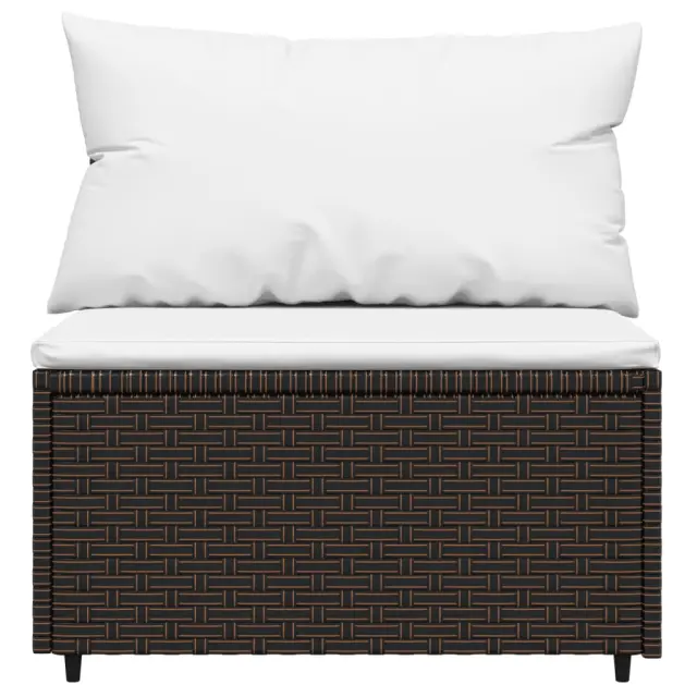 Ta trendovska vrtna sedežna garnitura z elegantno in sodobno zasnovo je odlična izbira za obedovanje ali sprostitev na vašem vrtu. Vremensko odporen material: PE ratan, znan tudi kot poli ratan, je odporen na vremenske vplive in enostaven za čiščenje. Na zunaj ostane lep dolgo časa. Ponuja odlično kakovost, priročnost in estetski videz.Vzdržljiv okvir: Prašno premazan jeklen okvir zagotavlja trdnost zunanje sedežne garniture za vsakodnevno uporabo na prostem.Modularna zasnova: Vrtna sedežna garnitura je prilagodljiva in enostavna za premikanje, zato jo lahko kombinirate z drugimi modularnimi segmenti iz spletne trgovine in ustvarite svoj oseben sestav vrtne sedežne garniture!Udobna izkušnja sedenja: Naslonjalo za hrbet zagotavlja dodatno udobje pri sedenju na vrtnem kavču. Poleg tega debelo podložene blazine zagotavljajo udobje med sedenjem. Dobro je vedeti:Za čim lažjo montažo je vsakemu izdelku priložen priročnik. Opomba:Izdelek je zasnovan samo za uporabo na prostem. Ne shranjujte ga v zaprtih prostorih.Če želite, da vaše zunanje pohištvo ostane lepo, vam priporočamo, da ga zaščitite z vodoodporno prevleko.Barva: RjavaBarva blazin: Kremno belaMaterial: PE ratan, jeklo s prašnim premazom, blago (100 % poliester)Polnilo: Pena, bombažna vlaknaKotni kavč:Dimenzije (vsak): 63 x 63 x 57,5 cm (Š x G x V)Velikost sedeža: 55 x 55 cm (Š x G)Višina sedeža, merjena od tal: 31 cmDimenzije sedežne blazine: 55 x 55 x 3 cm (Š x G x D)Velikost blazine (velika): 61 x 38 cm (Š x G)Velikost blazine (majhna): 46 x 38 cm (Š x G)Sredinski kavč:Dimenzije: 63 x 63 x 57,5 cm (Š x G x V)Velikost sedeža: 63 x 55 cm (Š x G)Višina sedeža, merjena od tal: 31 cmDimenzije sedežne blazine: 63 x 55 x 3 cm (Š x G x D)Velikost vzglavnika: 68 x 37 cm (Š x G)Nastavljive nogePaket vsebuje:2 x Kotni kavč1 x Sredinski kavč3 x Blazina za sedež5 x Vzglavnik Največ 110 kg na sedež.
