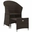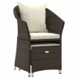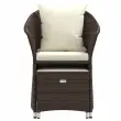 S to vrtno sedežno garnituro uživajte v prijetnem času v svojem zunanjem prostoru! Je odličen dodatek za vaš vrt in teraso, saj bo naredila trajen vtis! Vzdržljiv material: Poli ratan je izjemno odporen material, ki je vzdržljiv v različnih vremenskih razmerah. Prav tako potrebuje malo vzdrževanja.Stabilen okvir: Jeklen okvir zagotavlja trdnost in stabilnost zunanje sedežne garniture.Mehke blazine: Vrtni garnituri so priložene debele, odstranljive blazine, ki zagotavljajo največje udobje pri sedenju.Udobno naslonjalo za roke in hrbet: Zaobljena naslonjala za hrbet in roke omogočajo udoben počitek rok in hrbta.Praktični stolček: S priloženim stolčkom se lahko sprostite in dvignete noge. Prav tako lahko stolček postavite kamor koli glede na vaše želje. Opomba:Vsakemu izdelku je priložen priročnik za enostavno sestavljanje.Da bi podaljšali življenjsko dobo vašega zunanjega pohištva, vam priporočamo, da ga zaščitite z vodoodporno prevleko.Barva: RjavaBarva blazin: BelaMaterial: PE ratan, jekloStolček:Dimenzije: 42 x 43 x 36,5 cm (Š x G x V)Širina sedeža: 42 cmGlobina sedeža: 40,5 cmVišina sedeža, merjena od tal: 30 cmStol:Dimenzije: 65 x 54 x 84 cm (Š x G x V)Višina sedeža, merjena od tal: 42 cmPopolnoma pleten dizajnMaksimalna nosilnost (na sedež): 110 kgPaket vsebuje:1 x Stol1 x Stolček1 x Blazina za hrbet2 x Sedežna blazina