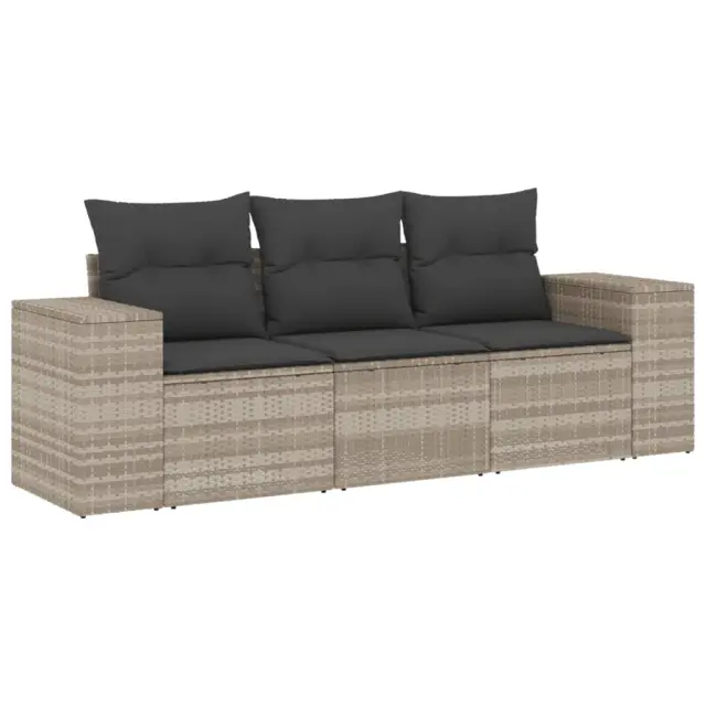 Ta vrtna sedežna garnitura je popoln dodatek za vaše dvorišče, teraso ali verando, saj zagotavlja udoben in vabljiv prostor za klepet z družino in prijatelji ali preprosto za sprostitev in uživanje na prostem. Vzdržljiv material: PE ratan, znan tudi kot poli ratan, je močan sintetični material, ki zahteva malo vzdrževanja in je videti kot naravni ratan. Je lahek, enostaven za čiščenje in se zaradi svoje vzdržljivosti in odpornosti na vremenske vplive pogosto uporablja za zunanje pohištvo.Funkcija shranjevanja z vodoodporno torbo: Vrtno pohištvo ima pod sedežem prostor za shranjevanje, opremljen z vodoodporno torbo za shranjevanje blazin, igrač in drugih stvari. Notranjo torbo je mogoče varno pritrditi na zunanje pohištvo s kavljem in zanko za večjo stabilnost.Prevleko je mogoče odstraniti in oprati: Te sedežne blazine imajo odstranljive prevleke za lažje pranje in vzdrževanje.Modularna zasnova: Ta komplet zunanjega pohištva ima modularno zasnovo, zaradi česar je popolnoma prilagodljiv in enostaven za premikanje, tako da lahko zunanjo garnituro postavite kakor koli želite. Dobro je vedeti:Če želite, da vaše zunanje pohištvo ostane lepo, vam priporočamo, da ga zaščitite z vodoodporno prevleko.Maksimalna nosilnost (na sedež): 110 kgUV-odpornoPlastične nastavljive nogePotrebno sestavljanje: DaSrednji sedež:Barva: Svetlo sivaMaterial: PE ratan, jeklen okvir s prašnim premazomDimenzije: 55 x 62 x 69 cm (Š x G x V)Velikost sedeža: 55 x 55 cm (Š x G)Višina sedeža, merjena od tal: 37 cmKavč z naslonjali za roke:Barva: Svetlo sivaMaterial: PE ratan, jeklen okvir s prašnim premazomDimenzije: 83 x 62 x 69 cm (Š x G x V)Velikost sedeža: 55 x 55 cm (Š x G)Višina sedeža, merjena od tal: 37 cmVišina naslonjal za roke od tal: 55 cmBlazina:Barva: Temno sivaMaterial prevleke: Tkanina (100 % poliester)Polnilo sedežne blazine: PenaPolnilo hrbtne blazine: bombažna vlaknaDimenzije sedežne blazine: 55 x 55 x 3 cm (Š x G x D)Dimenzije hrbtne blazine: 55 x 45 x 13 cm (D x Š x D)Paket vsebuje:1 x Srednji kavč s funkcijo shranjevanja z vodoodporno vrečo2 x Kavč s funkcijo shranjevanja z vodoodporno vrečo3 x Blazina za hrbet6 x Sedežna blazina s snemljivo pralno prevleko