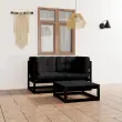 Ta vrtna garnitura je odlična izbira za sproščanje in uživanje v lepem vremenu, za dremanje ali klepetanje z družino ali prijatelji. Vrtna sedežna garnitura je izdelana iz trdne borovine, zato je močna in stabilna. Blazine prispevajo k dodatnemu udobju. Izdelek lahko kombinirate z drugimi modularnimi segmenti in tako ustvarite svojo lastno vrtno sedežno garnituro! Opomba: Da bi podaljšali življenjsko dobo vašega zunanjega pohištva, vam priporočamo, da ga zaščitite z vodoodporno prevleko.Barva: ČrnaBarva blazin: AntracitnaMaterial: Trdna borovina, blago (100 % poliester)Dimenzije kotnega kavča: 70 x 70 x 67 cm (Š x G x V)Dimenzije mize: 70 x 70 x 30 cm (Š x G x V)Dimenzije sedežne blazine: 70 x 70 x 8 cm (D x Š x D)Dimenzije blazine za hrbet / stranske blazine: 70 x 40 x 8 cm (D x Š x D)Maksimalna nosilnost (na sedež): 110 kgPotrebno sestavljanje: DaPaket vsebuje:2 x Kotni kavč1 x Miza2 x Sedežna blazina4 x Blazina za hrbet/stranska blazina Največ 110 kg na sedež.