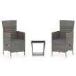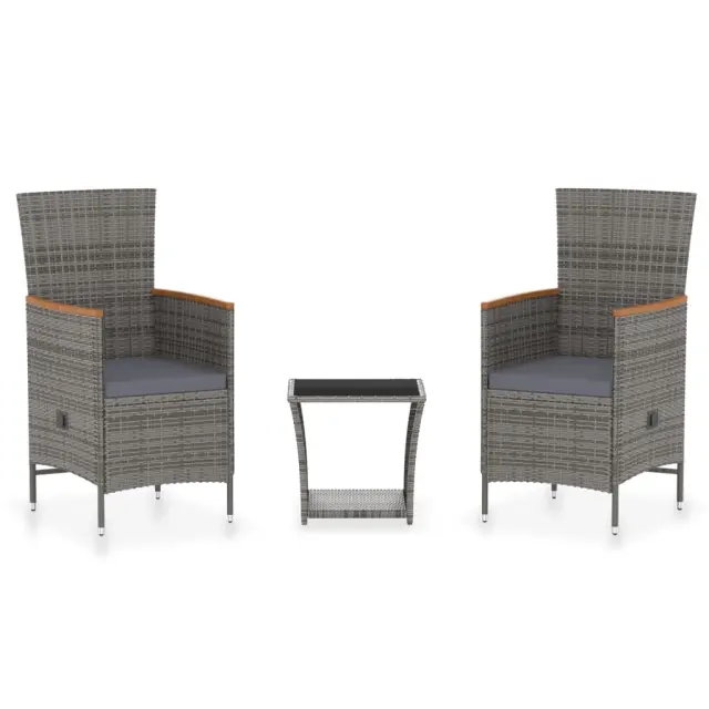 S to trendovsko vrtno sedežno garnituro iz poli ratana lahko z družino ali prijatelji uživate v sproščanju na svežem zraku! Naslanjači in klubska mizica so izdelani iz vremensko odpornega PE ratana, zato so preprosti za čiščenje, trpežni in primerni za vsakodnevno uporabo. Prašno premazan jeklen okvir zagotavlja moč in trdnost zunanje garniture. Čajna mizica ima stekleno površino, ki je preprosta za čiščenje, spodnja polica pa ponuja dodaten prostor za shranjevanje. Naslanjači nudijo potrebno mero udobja. Naslonjalo za hrbet se lahko nagne s pomočjo gumba na strani. Komplet pohištva ima lahko konstrukcijo, zato je preprost za premikanje. Dostavljen je z zelo udobnimi in debelo podloženimi sedežnimi blazinami za zagotavljanje izjemnega udobja. Poliestrske prevleke so preproste za vzdrževanje, saj jih lahko odstranite in operete. Opomba: Priporočamo, da garnituro pokrijete v primeru dežja, snega in zmrzali, da podaljšate njeno življenjsko dobo.Barva poli ratana: SivaBarva blazine: Temno sivaMaterial: PE ratan, trden akacijev les, jeklo s prašnim premazom, jedkano stekloMaterial prevlek za blazine: 100 % poliesterDimenzije mize: 45 x 45 x 40 cm (D x Š x V)Dimenzije stola (nespuščeno naslonjalo): 58 x 62 x 108 cm (Š x G x V)Dimenzije stola (spuščeno naslonjalo): 58 x 90 x 91 cm (Š x G x V)Širina sedeža: 47 cmGlobina sedeža: 47 cmVišina sedeža od tal brez blazine: 43 cmVišina naslona za roke, merjena od tal: 67 cmDebelina blazine: 5 cmPrilagodljivo naslonjalo za hrbetPotrebno sestavljanje: DaPaket vsebuje:1 x Miza2 x Stol2 x Sedežna blazina Maksimalna teža na sedež: 110 kg. Bodite pozorni na tveganje odprtega ognja in druge vire močne toplote v bližini izdelka.