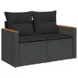 Ta vrtna sedežna garnitura je popoln dodatek za vaše dvorišče, teraso ali verando, saj zagotavlja udoben in vabljiv prostor za klepet z družino in prijatelji ali preprosto za sprostitev in uživanje na prostem. Vzdržljiv material: PE ratan, znan tudi kot poli ratan, je močan sintetični material, ki zahteva malo vzdrževanja in je videti kot naravni ratan. Je lahek, enostaven za čiščenje in se zaradi svoje vzdržljivosti in odpornosti na vremenske vplive pogosto uporablja za zunanje pohištvo.Prevleko je mogoče odstraniti in oprati: Te sedežne blazine imajo odstranljive prevleke za lažje pranje in vzdrževanje.Robusten in stabilen okvir: Prašno barvan jekleni okvir zagotavlja, da je vrtno pohištvo močno in stabilno za vsakodnevno uporabo na prostem.Modularna zasnova: Ta komplet zunanjega pohištva ima modularno zasnovo, zaradi česar je popolnoma prilagodljiv in enostaven za premikanje, tako da lahko zunanjo garnituro postavite kakor koli želite. Dobro je vedeti:Če želite, da vaše zunanje pohištvo ostane lepo, vam priporočamo, da ga zaščitite z vodoodporno prevleko.Maksimalna nosilnost (na sedež): 110 kgUV-odpornoPotrebno sestavljanje: DaSrednji sedež:Barva: ČrnaMaterial: PE ratan, jeklen okvir s prašnim premazomDimenzije: 55 x 62 x 69 cm (Š x G x V)Velikost sedeža: 55 x 55 cm (Š x G)Višina sedeža, merjena od tal: 37 cmKavč z naslonjali za roke:Barva: ČrnaMaterial: PE ratan, jeklen okvir s prašnim premazomDimenzije: 61,5 x 62 x 69 cm (Š x G x V)Velikost sedeža: 55 x 55 cm (Š x G)Višina sedeža, merjena od tal: 37 cmVišina naslonjal za roke od tal: 55 cmBlazina:Barva: Črna Material prevleke: Tkanina (100 % poliester)Polnilo sedežne blazine: PenaPolnilo hrbtne blazine: bombažna vlaknaDimenzije sedežne blazine: 55 x 55 x 3 cm (Š x G x D)Dimenzije hrbtne blazine: 55 x 45 x 13 cm (D x Š x D)Paket vsebuje:1 x Sredinski sedež2 x Kavč z naslonjali za roke3 x Blazina za hrbet6 x Sedežna blazina s snemljivo pralno prevleko