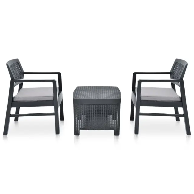 Seti vrtnega pohištva - Vrtna garnitura - Vrtni pohištvo set 3-delna plastika antracitna