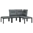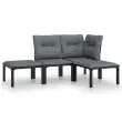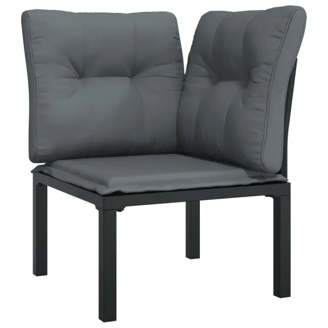 Elegantna in sodobna vrtna sedežna garnitura je popolna izbira za obedovanje ali sproščanje na vašem vrtu. Vremensko odporen material: PE ratan, znan tudi kot poli ratan, je odporen na vremenske vplive in enostaven za čiščenje. Na zunaj ostane lep dolgo časa. Ponuja odlično kakovost, priročnost in estetski videz. Trpežen in stabilen okvir: Prašno premazan jeklen okvir sedežne garniture zagotavlja trdnost in stabilnost.Udobna izkušnja sedenja: Naslonjalo za hrbet zagotavlja dodatno udobje pri sedenju na stolu. Poleg tega debelo podložene blazine zagotavljajo udobje med sedenjem.Modularna zasnova: Zunanja sedežna garnitura je prilagodljiva in enostavna za premikanje, zato jo lahko kombinirate z drugimi modularnimi segmenti iz spletne trgovine in ustvarite svoj osebni sestav vrtne sedežne garniture!Praktičen stolček za noge: Stolček za noge je primeren za počitek nog in sprostitev, hkrati pa vam nudi dodaten sedež na prostem. Dobro je vedeti:Za čim lažjo montažo je vsakemu izdelku priložen priročnik.Opomba:Če želite, da vaše zunanje pohištvo ostane lepo, vam priporočamo, da ga zaščitite z vodoodporno prevleko.Kotni stol:Barva: ČrnaMaterial: PE ratan, tekstilen, prašno lakirano jekloDimenzije: 62 x 62 x 68 cm (Š x G x V)Velikost sedeža: 55 x 55 cm (Š x G)Višina sedeža, merjena od tal: 31 cmMaksimalna nosilnost: 110 kgEnojni stol:Barva: ČrnaMaterial: PE ratan, tekstilen, prašno lakirano jekloDimenzije: 55 x 62 x 68 cm (Š x G x V)Velikost sedeža: 55 x 55 cm (Š x G)Višina sedeža, merjena od tal: 31 cmMaksimalna nosilnost: 110 kgStolček za noge:Barva: ČrnaMaterial: PE ratan, tekstilen, prašno lakirano jekloDimenzije: 55 x 55 x 34,5 cm (Š x G x V)Velikost sedeža: 55 x 55 cm (Š x G)Višina sedeža, merjena od tal: 31 cmMaksimalna nosilnost (na sedež): 110 kgBlazina:Barva blazin: Temno sivaMaterial prevlek za blazine: Tkanina (100 % poliester)Polnilo sedežne blazine: PenaPolnilo hrbtne blazine: PP bombažDimenzije hrbtne blazine: 55 x 45 x 12 cm (D x Š x D)Dimenzije sedežne blazine: 55 x 55 x 3,5 cm (D x Š x D)Paket vsebuje:1 x Kotni stol1 x Enojni stol2 x Stolček za noge4 x Blazina za sedež3 x Blazina za hrbet Maksimalna teža na sedež: 110 kg. Bodite pozorni na tveganje odprtega ognja in druge vire močne toplote v bližini izdelka.