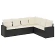 Seti vrtnega pohištva - Vrtna garnitura - Vrtni pohištvo set 6-delna z blazinami črna poli ratan