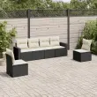 Ta vrtna sedežna garnitura je popoln dodatek za vaše dvorišče, teraso ali verando, saj zagotavlja udoben in vabljiv prostor za klepet z družino in prijatelji ali preprosto za sprostitev in uživanje na prostem. Vzdržljiv material: PE ratan, znan tudi kot poli ratan, je močan sintetični material, ki zahteva malo vzdrževanja in je videti kot naravni ratan. Je lahek, enostaven za čiščenje in se zaradi svoje vzdržljivosti in odpornosti na vremenske vplive pogosto uporablja za zunanje pohištvo.Udobno sedenje: To zunanje pohištvo z debelo oblazinjenimi blazinami zagotavlja udobno sedenje. Široki nasloni za roke so tudi priročen prostor za mobilni telefon, skodelice ali druge manjše predmete, da jih lahko zlahka dosežete.Prevleko je mogoče odstraniti in oprati: Te sedežne blazine imajo odstranljive prevleke za lažje pranje in vzdrževanje.Modularna zasnova: Ta komplet zunanjega pohištva ima modularno zasnovo, zaradi česar je popolnoma prilagodljiv in enostaven za premikanje, tako da lahko zunanjo garnituro postavite kakor koli želite. Dobro je vedeti:Če želite, da vaše zunanje pohištvo ostane lepo, vam priporočamo, da ga zaščitite z vodoodporno prevleko.Maksimalna nosilnost (na sedež): 110 kgUV-odpornoPlastične nastavljive nogePotrebno sestavljanje: DaKotni sedež:Barva: ČrnaMaterial: PE ratan, jeklen okvir s prašnim premazomDimenzije: 65,5 x 62 x 69 cm (Š x G x V)Velikost sedeža: 55 x 55 cm (Š x G)Višina sedeža, merjena od tal: 37 cmVišina naslonjal za roke od tal: 55 cmŠirina naslonjala za roke: 10 cmSrednji sedež:Barva: ČrnaMaterial: PE ratan, jeklen okvir s prašnim premazomDimenzije: 55 x 62 x 69 cm (Š x G x V)Velikost sedeža: 55 x 55 cm (Š x G)Višina sedeža, merjena od tal: 37 cmBlazina:Barva: Kremno belaMaterial prevleke: Tkanina (100 % poliester)Polnilo sedežne blazine: PenaPolnilo hrbtne blazine: bombažna vlaknaDimenzije sedežne blazine: 55 x 55 x 3 cm (Š x G x D)Dimenzije hrbtne blazine: 55 x 45 x 13 cm (D x Š x D)Paket vsebuje:2 x Kotni sedež4 x Srednji sedež6 x Blazina za hrbet6 x Sedežna blazina s snemljivo pralno prevleko