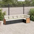 Ta vrtna sedežna garnitura je popoln dodatek za vaše dvorišče, teraso ali verando, saj zagotavlja udoben in vabljiv prostor za klepet z družino in prijatelji ali preprosto za sprostitev in uživanje na prostem. Vzdržljiv material: PE ratan, znan tudi kot poli ratan, je močan sintetični material, ki zahteva malo vzdrževanja in je videti kot naravni ratan. Je lahek, enostaven za čiščenje in se zaradi svoje vzdržljivosti in odpornosti na vremenske vplive pogosto uporablja za zunanje pohištvo.Udobno sedenje: To zunanje pohištvo z debelo oblazinjenimi blazinami zagotavlja udobno sedenje.Prevleko je mogoče odstraniti in oprati: Te sedežne blazine imajo odstranljive prevleke za lažje pranje in vzdrževanje.Modularna zasnova: Ta komplet zunanjega pohištva ima modularno zasnovo, zaradi česar je popolnoma prilagodljiv in enostaven za premikanje, tako da lahko zunanjo garnituro postavite kakor koli želite. Dobro je vedeti:Če želite, da vaše zunanje pohištvo ostane lepo, vam priporočamo, da ga zaščitite z vodoodporno prevleko.Maksimalna nosilnost (na sedež): 110 kgUV-odpornoPlastične nastavljive nogePotrebno sestavljanje: DaKotni sedež:Barva: ČrnaMaterial: PE ratan, jeklen okvir s prašnim premazomDimenzije: 62 x 62 x 69 cm (Š x G x V)Velikost sedeža: 55 x 55 cm (Š x G)Višina sedeža, merjena od tal: 37 cmSrednji sedež:Barva: ČrnaMaterial: PE ratan, jeklen okvir s prašnim premazomDimenzije: 55 x 62 x 69 cm (Š x G x V)Velikost sedeža: 55 x 55 cm (Š x G)Višina sedeža, merjena od tal: 37 cmKavč z naslonjali za roke:Barva: ČrnaMaterial: PE ratan, jeklen okvir s prašnim premazomDimenzije: 59 x 62 x 69 cm (Š x G x V)Velikost sedeža: 55 x 55 cm (Š x G)Višina sedeža, merjena od tal: 37 cmVišina naslonjal za roke od tal: 55 cmBlazina:Barva: Kremno belaMaterial prevleke: Tkanina (100 % poliester)Polnilo sedežne blazine: PenaPolnilo hrbtne blazine: bombažna vlaknaDimenzije sedežne blazine: 55 x 55 x 3 cm (Š x G x D)Dimenzije hrbtne blazine: 55 x 45 x 13 cm (D x Š x D)Paket vsebuje:2 x Kavč z naslonjali za roke3 x Srednji sedež1 x Kotni sedež7 x Hrbtna blazina6 x Sedežna blazina s snemljivo pralno prevleko