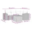 Ta vrtna sedežna garnitura je popoln dodatek za vaše dvorišče, teraso ali verando, saj zagotavlja udoben in vabljiv prostor za klepet z družino in prijatelji ali preprosto za sprostitev in uživanje na prostem. Vzdržljiv material: PE ratan, znan tudi kot poli ratan, je močan sintetični material, ki zahteva malo vzdrževanja in je videti kot naravni ratan. Je lahek, enostaven za čiščenje in se zaradi svoje vzdržljivosti in odpornosti na vremenske vplive pogosto uporablja za zunanje pohištvo.Stabilna mizna plošča, ki je enostavna za čiščenje: Ta vrtna miza ima ploščo iz akacijevega lesa, ki je čvrsta, vzdržljiva in jo je enostavno čistiti z vlažno krpo. Udobno sedenje: To zunanje pohištvo z debelo oblazinjenimi blazinami zagotavlja udobno sedenje.Prevleko je mogoče odstraniti in oprati: Te sedežne blazine imajo odstranljive prevleke za lažje pranje in vzdrževanje.Modularna zasnova: Ta komplet zunanjega pohištva ima modularno zasnovo, zaradi česar je popolnoma prilagodljiv in enostaven za premikanje, tako da lahko zunanjo garnituro postavite kakor koli želite. Dobro je vedeti:Če želite, da vaše zunanje pohištvo ostane lepo, vam priporočamo, da ga zaščitite z vodoodporno prevleko.Maksimalna nosilnost (na sedež): 110 kgUV-odpornoPotrebno sestavljanje: DaKotni sedež:Barva: SivaMaterial: PE ratan, jeklen okvir s prašnim premazomDimenzije: 62 x 62 x 69 cm (Š x G x V)Velikost sedeža: 55 x 55 cm (Š x G)Višina sedeža, merjena od tal: 37 cmSrednji sedež:Barva: SivaMaterial: PE ratan, jeklen okvir s prašnim premazomDimenzije: 55 x 62 x 69 cm (Š x G x V)Velikost sedeža: 55 x 55 cm (Š x G)Višina sedeža, merjena od tal: 37 cmKavč z naslonjali za roke:Barva: SivaMaterial: PE ratan, jeklen okvir s prašnim premazomDimenzije: 93 x 62 x 69 cm (Š x G x V)Velikost sedeža: 55 x 55 cm (Š x G)Višina sedeža, merjena od tal: 37 cmVišina naslonjal za roke od tal: 55 cmMiza:Barva: SivaMaterial: PE ratan, prašno premazano jeklo, trden akacijev les z oljnim premazomDimenzije: 55 x 55 x 37 cm (D x Š x V)Blazina:Barva: Temno siva Material prevleke: Tkanina (100 % poliester)Polnilo sedežne blazine: PenaPolnilo hrbtne blazine: bombažna vlaknaDimenzije sedežne blazine: 55 x 55 x 3 cm (Š x G x D)Dimenzije hrbtne blazine: 55 x 45 x 13 cm (D x Š x D)Paket vsebuje:1 x Kotni sedež1 x Sredinski sedež2 x Kavč z naslonjali za roke1 x Vrtna miza5 x Blazina za hrbet4 x Blazina za sedež