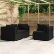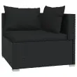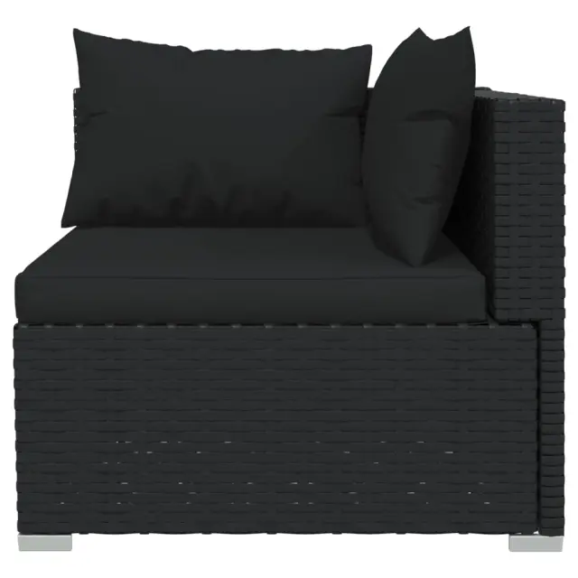 Ta modna vrtna sedežna garnitura je odlična izbira za preživljanje časa v notranjih ali zunanjih prostorih. Popolnoma združuje slog in funkcionalnost! Ta vrtna sedežna garnitura ima jeklen prašno premazan okvir in plastične krom noge, zato je zelo vzdržljiva. Vrtna sedežna garnitura je izdelana iz vodoodpornega PE ratana, zato je trpežna in primerna za vsakodnevno uporabo na prostem. Zahvaljujoč lahki konstrukciji je ta sedežna garnitura preprosta za premikanje. Debelo podložene in odstranljive blazine so zelo udobne. Modularen dizajn omogoča, da komplet postavite v poljubno razporeditev ali ga kombinirate z drugimi modularnimi segmenti, ki ustrezajo vašim zahtevam! Opomba: Da bi podaljšali življenjsko dobo vašega zunanjega pohištva, vam priporočamo, da ga zaščitite z vodoodporno prevleko.Barva: ČrnaBarva blazine: ČrnaMaterial: PE ratan, prašno premazano jeklo, plastikaMaterial blazine/vzglavnika: Tekstil (100 % poliester)Dimenzije vsakega kotnega kavča 70 x 70 x 60,5 cm (D x Š x V)Globina sedeža: 63 cmVišina sedeža, merjena od tal: 30 cmDimenzije blazine za sedež: 63 x 63 x 6 cm (D x Š x D)Velikost velike/majhne hrbtne blazine: 63/53 x 40,5 cm (D x Š)Potrebno sestavljanje: DaPaket vsebuje:3 x Kotni kavč3 x Blazina za sedež3 x Velika blazina za hrbet3 x Majhna blazina za hrbet