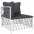 Uživajte v skodelici kave ali čaja na prostem s to udobno vrtno sedežno garnituro! Trpežen material: Tkanina je vsak tekstil, ki se oblikuje s tkanjem. Gre za izjemno uporabno vrsto tkanine, ki jo zaradi trpežnosti in vsestranskosti pogosto uporabljamo v vsakdanjem življenju.Vzdržljiv okvir: Prašno premazani jekleni okvirji zagotavljajo trdnost sedežne garniture za vsakodnevno uporabo na prostem.Udobna izkušnja sedenja: Naslonjalo za hrbet zagotavlja dodatno udobje pri sedenju na zunanjem kavču. Poleg tega debelo podložene blazine zagotavljajo udobje med sedenjem.Modularna zasnova: Garnitura je prilagodljiva in enostavna za premikanje, zato jo lahko kombinirate z drugimi modularnimi segmenti v spletni trgovini in tako ustvarite svoje osebne konfiguracije vrtne sedežne garniture! Opomba:Če želite, da vaše zunanje pohištvo ostane lepo, vam priporočamo, da ga zaščitite z vodoodporno prevleko.Vrtni kotni kavč:Barva: BelaMaterial: Tkanina, prašno barvano jeklo, tekstilenDimenzije: 72 x 72 x 66 cm (Š x G x V)Velikost sedeža: 70 x 70 cm (Š x G)Maksimalna nosilnost (na sedež): 110 kgVrtna miza:Barva: BelaMaterial: Tkanina, prašno barvano jekloDimenzije: 70 x 70 x 34 cm (Š x G x V)Maksimalna nosilnost (na sedež): 110 kgBlazina:Barva: Temno sivaMaterial prevleke: Tkanina (100 % poliester)Polnilo sedežne blazine: PenaPolnilo hrbtne blazine: PP bombažDimenzije sedežne blazine: 70 x 70 x 5 cm (D x Š x D)Velikost hrbtne blazine (velika): 69 x 41 cm (D x Š)Velikost hrbtne blazine (majhna): 54 x 41 cm (D x Š)Potrebno sestavljanje: DaPaket vsebuje:2 x Vrtni kotni kavč1 x Vrtna miza2 x Sedežna blazina2 x Hrbtna blazina (velika)2 x Hrbtna blazina (majhna) Maksimalna teža na sedež: 110 kg. Bodite pozorni na tveganje odprtega ognja in druge vire močne toplote v bližini izdelka.
