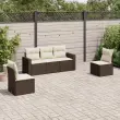 Ta vrtna sedežna garnitura je popoln dodatek za vaše dvorišče, teraso ali verando, saj zagotavlja udoben in vabljiv prostor za klepet z družino in prijatelji ali preprosto za sprostitev in uživanje na prostem. Vzdržljiv material: PE ratan, znan tudi kot poli ratan, je močan sintetični material, ki zahteva malo vzdrževanja in je videti kot naravni ratan. Je lahek, enostaven za čiščenje in se zaradi svoje vzdržljivosti in odpornosti na vremenske vplive pogosto uporablja za zunanje pohištvo.Funkcija shranjevanja z vodoodporno vrečo: Vsak vrtni sedež ima prostor za shranjevanje pod sedežem, skupaj z vodoodporno vrečo za shranjevanje blazin, igrač in drugih predmetov. Notranje vreče imajo zgornjo prevleko in jih je mogoče s pomočjo primenjal varno pritrditi na sedeže za dodatno varnost.Udobno sedenje: To zunanje pohištvo z debelo oblazinjenimi blazinami zagotavlja udobno sedenje.Prevleko je mogoče odstraniti in oprati: Te sedežne blazine imajo odstranljive prevleke za lažje pranje in vzdrževanje.Modularna zasnova: Ta komplet zunanjega pohištva ima modularno zasnovo, zaradi česar je popolnoma prilagodljiv in enostaven za premikanje, tako da lahko zunanjo garnituro postavite kakor koli želite. Dobro je vedeti:Če želite, da vaše zunanje pohištvo ostane lepo, vam priporočamo, da ga zaščitite z vodoodporno prevleko.Maksimalna nosilnost (na sedež): 110 kgUV-odpornoPlastične nastavljive nogePotrebno sestavljanje: DaSrednji sedež:Barva: RjavaMaterial: PE ratan, jeklen okvir s prašnim premazomDimenzije: 55 x 62 x 69 cm (Š x G x V)Velikost sedeža: 55 x 55 cm (Š x G)Višina sedeža, merjena od tal: 37 cmKavč z naslonjali za roke:Barva: RjavaMaterial: PE ratan, jeklen okvir s prašnim premazomDimenzije: 65,5 x 62 x 69 cm (Š x G x V)Velikost sedeža: 55 x 55 cm (Š x G)Višina sedeža, merjena od tal: 37 cmVišina naslonjal za roke od tal: 55 cmBlazina:Barva: Kremno belaMaterial prevleke: Tkanina (100 % poliester)Polnilo sedežne blazine: PenaPolnilo hrbtne blazine: bombažna vlaknaDimenzije sedežne blazine: 55 x 55 x 3 cm (Š x G x D)Dimenzije hrbtne blazine: 55 x 45 x 13 cm (D x Š x D)Paket vsebuje:3 x Srednji kavč s funkcijo shranjevanja z vodoodporno vrečo2 x Kavč s funkcijo shranjevanja z vodoodporno vrečo5 x Blazina za hrbet5 x Sedežna blazina s snemljivo pralno prevleko