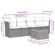Ta vrtna sedežna garnitura je popoln dodatek za vaše dvorišče, teraso ali verando, saj zagotavlja udoben in vabljiv prostor za klepet z družino in prijatelji ali preprosto za sprostitev in uživanje na prostem. Vzdržljiv material: PE ratan, znan tudi kot poli ratan, je močan sintetični material, ki zahteva malo vzdrževanja in je videti kot naravni ratan. Je lahek, enostaven za čiščenje in se zaradi svoje vzdržljivosti in odpornosti na vremenske vplive pogosto uporablja za zunanje pohištvo.Udobno sedenje: To zunanje pohištvo z debelo oblazinjenimi blazinami zagotavlja udobno sedenje.Stabilna mizna plošča, ki je enostavna za čiščenje: Ta vrtna miza ima ploščo iz akacijevega lesa, ki je čvrsta, vzdržljiva in jo je enostavno čistiti z vlažno krpo.Prevleko je mogoče odstraniti in oprati: Te sedežne blazine imajo odstranljive prevleke za lažje pranje in vzdrževanje.Modularna zasnova: Ta komplet zunanjega pohištva ima modularno zasnovo, zaradi česar je popolnoma prilagodljiv in enostaven za premikanje, tako da lahko zunanjo garnituro postavite kakor koli želite. Dobro je vedeti:Če želite, da vaše zunanje pohištvo ostane lepo, vam priporočamo, da ga zaščitite z vodoodporno prevleko.Maksimalna nosilnost (na sedež): 110 kgUV-odpornoPlastične nastavljive nogePotrebno sestavljanje: DaKotni sedež:Barva: SivaMaterial: PE ratan, jeklen okvir s prašnim premazomDimenzije: 62 x 62 x 69 cm (Š x G x V)Velikost sedeža: 55 x 55 cm (Š x G)Višina sedeža, merjena od tal: 37 cmSrednji sedež:Barva: SivaMaterial: PE ratan, jeklen okvir s prašnim premazomDimenzije: 55 x 62 x 69 cm (Š x G x V)Velikost sedeža: 55 x 55 cm (Š x G)Višina sedeža, merjena od tal: 37 cmMiza:Barva: Siva in rjavaMaterial: PE ratan, prašno premazano jeklo, trden akacijev les z oljnim premazomDimenzije: 55 x 55 x 37 cm (D x Š x V)Blazina:Barva: Temno sivaMaterial prevleke: Tkanina (100 % poliester)Polnilo sedežne blazine: PenaPolnilo hrbtne blazine: bombažna vlaknaDimenzije sedežne blazine: 55 x 55 x 3 cm (Š x G x D)Dimenzije hrbtne blazine: 55 x 45 x 13 cm (D x Š x D)Paket vsebuje:1 x Vrtna miza2 x Kotni kavč2 x Sredinski kavč6 x Blazina za hrbet4 x Sedežna blazina s snemljivo in pralno prevleko