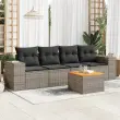 Ta vrtna sedežna garnitura je popoln dodatek za vaše dvorišče, teraso ali verando, saj zagotavlja udoben in vabljiv prostor za klepet z družino in prijatelji ali preprosto za sprostitev in uživanje na prostem. Vzdržljiv material: PE ratan, znan tudi kot poli ratan, je močan sintetični material, ki zahteva malo vzdrževanja in je videti kot naravni ratan. Je lahek, enostaven za čiščenje in se zaradi svoje vzdržljivosti in odpornosti na vremenske vplive pogosto uporablja za zunanje pohištvo.Stabilna mizna plošča, ki je enostavna za čiščenje: Ta vrtna miza ima ploščo iz akacijevega lesa, ki je čvrsta, vzdržljiva in jo je enostavno čistiti z vlažno krpo. Udobno sedenje: To zunanje pohištvo z debelo oblazinjenimi blazinami zagotavlja udobno sedenje. Prevleko je mogoče odstraniti in oprati: Te sedežne blazine imajo odstranljive prevleke za lažje pranje in vzdrževanje.Modularna zasnova: Ta komplet zunanjega pohištva ima modularno zasnovo, zaradi česar je popolnoma prilagodljiv in enostaven za premikanje, tako da lahko zunanjo garnituro postavite kakor koli želite. Dobro je vedeti:Če želite, da vaše zunanje pohištvo ostane lepo, vam priporočamo, da ga zaščitite z vodoodporno prevleko.Maksimalna nosilnost (na sedež): 110 kgUV-odpornoPotrebno sestavljanje: DaSrednji sedež:Barva: SivaMaterial: PE ratan, jeklen okvir s prašnim premazomDimenzije: 55 x 62 x 69 cm (Š x G x V)Velikost sedeža: 55 x 55 cm (Š x G)Višina sedeža, merjena od tal: 37 cmKavč z naslonjali za roke:Barva: SivaMaterial: PE ratan, jeklen okvir s prašnim premazomDimenzije: 83 x 62 x 69 cm (Š x G x V)Velikost sedeža: 55 x 55 cm (Š x G)Višina sedeža, merjena od tal: 37 cmVišina naslonjal za roke od tal: 55 cmMiza:Barva: SivaMaterial: PE ratan, prašno premazano jeklo, trden akacijev les z oljnim premazomDimenzije: 55 x 55 x 37 cm (D x Š x V)Blazina:Barva: Temno sivaMaterial prevleke: Tkanina (100 % poliester)Polnilo sedežne blazine: PenaPolnilo hrbtne blazine: bombažna vlaknaDimenzije sedežne blazine: 55 x 55 x 3 cm (Š x G x D)Dimenzije hrbtne blazine: 55 x 45 x 13 cm (D x Š x D)Paket vsebuje:2 x Sredinski sedež2 x Kavč z naslonjali za roke1 x Vrtna miza4 x Blazina za hrbet4 x Sedežna blazina s snemljivo in pralno prevleko