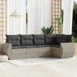 Seti vrtnega pohištva - Vrtna garnitura - Vrtni pohištvo set 5-delna z blazinami siv poli ratan