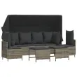 Seti vrtnega pohištva - Vrtna garnitura - Vrtni pohištvo set 5-delna z blazinami siv poli ratan