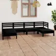 Ta lesena vrtna sedežna garnitura je idealna izbira za sproščanje in uživanje v lepem vremenu, za počitek ali pogovor z vašo družino ali prijatelji. Lesena sedežna garnitura ima brezčasno obliko iz palet, vaši terasi, vrtu ali dnevni sobi pa dodaja pridih rustikalnega čara. Ta sedežna garnitura za teraso, izdelana iz trdne borovine, je zelo vzdržljiva in odporna na vremenske vplive. Ta komplet pohištva ima trdno konstrukcijo in ne potrebuje veliko vzdrževanja. Poleg tega modularna zasnova omogoča poljubno postavitev kompleta po vašem okusu. Opomba: Da bi podaljšali življenjsko dobo vašega zunanjega pohištva, vam priporočamo, da ga zaščitite z vodoodporno prevleko.Barva: ČrnaMaterial: Trdna borovinaDimenzije kotnega / srednjega kavča: 63,5 x 63,5 x 62,5 cm (D x Š x V)Dimenzije mizice / stolčka: 63,5 x 63,5 x 28,5 cm (D x Š x V)Potrebno sestavljanje: DaPaket vsebuje:2 x Kotni kavč2 x Sredinski kavč2 x Mizica / stolček Največ 110 kg na sedež.