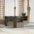 Ta vrtna sedežna garnitura je popoln dodatek za vaše dvorišče, teraso ali verando, saj zagotavlja udoben in vabljiv prostor za klepet z družino in prijatelji ali preprosto za sprostitev in uživanje na prostem. Vzdržljiv material: PE ratan, znan tudi kot poli ratan, je močan sintetični material, ki zahteva malo vzdrževanja in je videti kot naravni ratan. Je lahek, enostaven za čiščenje in se zaradi svoje vzdržljivosti in odpornosti na vremenske vplive pogosto uporablja za zunanje pohištvo.Nastavljiva mizna plošča: Z dvigom mizne plošče lahko mizo povišate, s čimer se zunanja klubska mizica spremeni v jedilno mizo. Popolna je za sprejemanje gostov ali uživanje v obrokih na prostem.Udobno sedenje: To zunanje pohištvo z debelo oblazinjenimi blazinami zagotavlja udobno sedenje.Prevleko je mogoče odstraniti in oprati: Te sedežne blazine imajo odstranljive prevleke za lažje pranje in vzdrževanje.Modularna zasnova: Ta komplet zunanjega pohištva ima modularno zasnovo, zaradi česar je popolnoma prilagodljiv in enostaven za premikanje, tako da lahko zunanjo garnituro postavite kakor koli želite. Dobro je vedeti:Če želite, da vaše zunanje pohištvo ostane lepo, vam priporočamo, da ga zaščitite z vodoodporno prevleko.Maksimalna nosilnost (na sedež): 110 kgUV-odpornoPotrebno sestavljanje: DaKotni sedež:Barva: SivaMaterial: PE ratan, jeklen okvir s prašnim premazomDimenzije: 62 x 62 x 69 cm (Š x G x V)Velikost sedeža: 55 x 55 cm (Š x G)Višina sedeža, merjena od tal: 37 cmSrednji sedež:Barva: SivaMaterial: PE ratan, jeklen okvir s prašnim premazomDimenzije: 55 x 62 x 69 cm (Š x G x V)Velikost sedeža: 55 x 55 cm (Š x G)Višina sedeža, merjena od tal: 37 cmMiza:Barva: SivaMaterial: PE ratan, jeklo s prašnim premazom, kaljeno stekloDimenzije: 100 x 55 x 44/73 cm (D x Š x V)Blazina:Barva: Temno siva Material prevleke: Tkanina (100 % poliester)Polnilo sedežne blazine: PenaPolnilo hrbtne blazine: bombažna vlaknaDimenzije sedežne blazine: 55 x 55 x 3 cm (Š x G x D)Dimenzije hrbtne blazine: 55 x 45 x 13 cm (D x Š x D)Paket vsebuje:2 x Kotni sedež2 x Sredinski sedež1 x Vrtna miza6 x Blazina za hrbet4 x Sedežna blazina s snemljivo in pralno prevleko