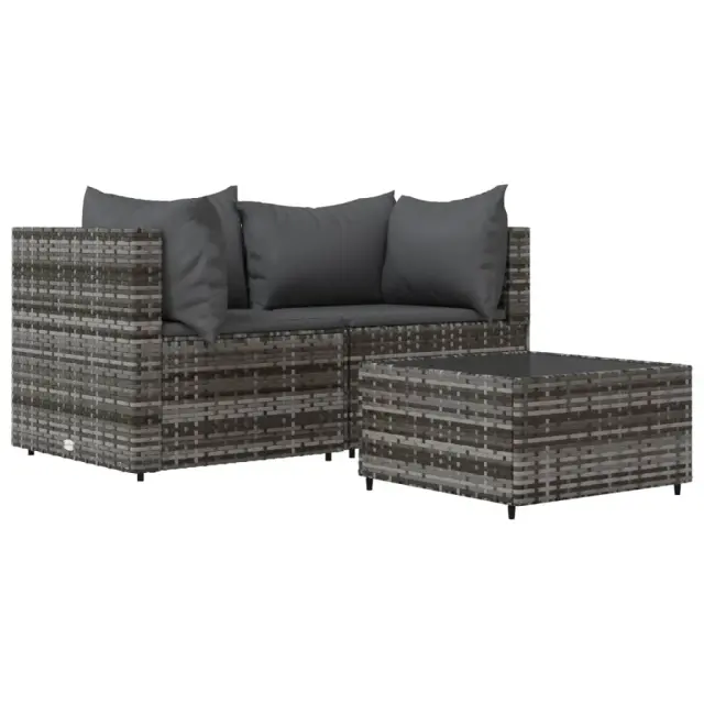 Seti vrtnega pohištva - Vrtna garnitura - Vrtni pohištvo set 3-delna z blazinami siv poli ratan