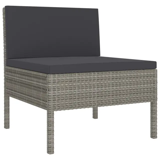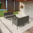 S to vrtno sedežno garnituro za teraso lahko ustvarite privlačen in sproščen prostor za počivanje, o katerem ste vedno sanjali. Na tem kompletu vrtnega pohištva boste lahko ob sončnih popoldnevih ali poletnih večerih uživali s svojo družino ali prijatelji! Ta zunanja sedežna garnitura iz vremensko odpornega in vodoodpornega PE ratana je preprosta za čiščenje in vzdrževanje. Jeklen okvir s prašnim premazom garnituri dodaja stabilnost in trdnost. Vrtna garnitura je opremljena z debelimi in mehkimi blazinami ter nudi izjemno udobje. Poliestrske prevleke so preproste za čiščenje, saj jih lahko odstranite in operete. Zahvaljujoč lahkemu in modularnemu dizajnu lahko to garnituro z lahkoto premikate okrog hiše. Opomba: Da bi podaljšali življenjsko dobo vašega zunanjega pohištva, vam priporočamo, da ga zaščitite z vodoodporno prevleko.Barva: SivaBarva blazin: AntracitnaMaterial: PE ratan, jeklo s prašnim premazom, blago (100 % poliester)Dimenzije mizice: 60 x 60 x 35 cm (D x Š x V)Dimenzije sredinskega kavča: 57 x 69 x 69 cm (Š x G x V)Širina sedeža: 57 cmGlobina sedeža: 57 cmVišina sedeža, merjena od tal: 35 cmPotrebno sestavljanje: DaPaket vsebuje:1 x Miza4 x Sredinski kavč4 x Blazina za sedež4 x Blazina za hrbet