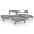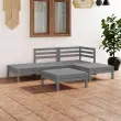Ta lesena vrtna sedežna garnitura je idealna izbira za sproščanje in uživanje v lepem vremenu, za počitek ali pogovor z vašo družino ali prijatelji. Lesena sedežna garnitura ima brezčasno obliko iz palet, vaši terasi, vrtu ali dnevni sobi pa bo dodala pridih rustikalnega čara. Ta zunanja garnitura iz trdne borovine je zelo trpežna in vremensko odporna. Sedežna garnitura ima trdno konstrukcijo ter ne potrebuje veliko vzdrževanja. Poleg tega modularna zasnova omogoča poljubno postavitev garniture po vašem okusu. Opomba: Da bi podaljšali življenjsko dobo vašega zunanjega pohištva, vam priporočamo, da ga zaščitite z vodoodporno prevleko.Barva: SivaMaterial: Trdna borovinaDimenzije kotnega / srednjega kavča: 63,5 x 63,5 x 62,5 cm (D x Š x V)Dimenzije stolčka / mizice: 63,5 x 63,5 x 28,5 cm (D x Š x V)Potrebno sestavljanje: DaPaket vsebuje:1 x Kotni kavč1 x Sredinski kavč3 x Stolček / mizica Največ 110 kg na sedež.