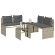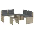 Ta vrtna sedežna garnitura je popoln dodatek za vaše dvorišče, teraso ali verando, saj zagotavlja udoben in vabljiv prostor za klepet z družino in prijatelji ali preprosto za sprostitev in uživanje na prostem. Vzdržljiv material: PE ratan, znan tudi kot poli ratan, je močan sintetični material, ki zahteva malo vzdrževanja in je videti kot naravni ratan. Je lahek, enostaven za čiščenje in se zaradi svoje vzdržljivosti in odpornosti na vremenske vplive pogosto uporablja za zunanje pohištvo.Udobno sedenje: To zunanje pohištvo z debelo oblazinjenimi blazinami zagotavlja udobno sedenje.Odstranljiva in pralna prevleka: Ta sedežna blazina ima odstranljivo prevleko za enostavno pranje in vzdrževanje.Steklena mizna plošča: Površina zunanje mize je izdelana iz močnega in trpežnega kaljenega stekla, kar omogoča enostavno čiščenje z vlažno krpo in vašemu zunanjemu prostoru doda pridih elegance.Robusten in stabilen okvir: Prašno barvan jekleni okvir zagotavlja, da je vrtno pohištvo močno in stabilno za vsakodnevno uporabo na prostem. Dobro je vedeti:Če želite, da vaše zunanje pohištvo ostane lepo, vam priporočamo, da ga zaščitite z vodoodporno prevleko.Maksimalna nosilnost (na sedež): 110 kgUV-odpornoPotrebno sestavljanje: DaKavč dvosed:Barva: Svetlo sivaMaterial: PE ratan, jeklen okvir s prašnim premazomDimenzije: 110 x 57 x 72 cm (Š x G x V)Velikost sedeža: 110 x 55 cm (Š x G)Višina sedeža od tal: 39 cmVrtna miza:Barva: Svetlo sivaMaterial: PE ratan, jeklo s prašnim premazom, kaljeno stekloDimenzije: 55 x 55 x 37 cm (D x Š x V)Vrtna miza (kotna):Barva: Svetlo sivaMaterial: PE ratan, jeklo s prašnim premazom, kaljeno stekloDimenzije: 45 x 45 x 37 cm (D x Š x V)Blazina:Barva: Temno sivaMaterial prevleke: Tkanina (100 % poliester)Polnilo sedežne blazine: PenaPolnilo hrbtne blazine: bombažna vlaknaDimenzije sedežne blazine: 110 x 55 x 3 cm (Š x G x D)Dimenzije hrbtne blazine: 53 x 43 x 10 cm (D x Š x D)Paket vsebuje:2 x Vrtna miza2 x Kotni kavč dvosed2 x Blazina za hrbet1 x Sedežna blazina s snemljivo in pralno prevleko Največ 110 kg na sedež. Zavedajte se nevarnosti odprtega ognja in drugih virov močne vročine v bližini izdelka.