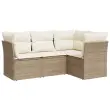 Seti vrtnega pohištva - Vrtna garnitura - Vrtni pohištvo set 4-delna z blazinami bež poli ratan