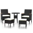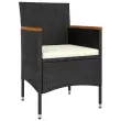 S to vrtno sedežno garnituro lahko ob bazen, na verando, teraso ali balkon dodate pridih modernega stila. Zunanja sedežna garnitura ima prašno premazan jeklen okvir, ki je oblečen v poli ratan. Mizna plošča je izdelana iz kaljenega stekla, zaradi česar je enostavna za čiščenje. Debelo podložena sedežna blazina stolu dodaja udobje. Opomba: Da bi podaljšali življenjsko dobo vašega zunanjega pohištva, vam priporočamo, da ga zaščitite z vodoodporno prevleko.Miza:Barva: ČrnaMaterial: Poli ratan, prašno premazano jeklo, kaljeno stekloDimenzije: 60 x 75 cm (premer x V)Debelina stekla: 5 mmZ zaščitno gumo za stekloStol in stolček:Barva PE ratana: ČrnaBarva blazin: Kremno belaMaterial: Poli ratan, trden akacijev les, jeklo s prašnim premazom, blago (100 % poliester)Dimenzije stola: 53 x 58 x 84 cm (Š x G x V)Velikost sedeža: 39/44,5 x 46 cm (Š x G)Višina sedeža, merjena od tal: 42 cmVišina naslonjala za roke, merjena od tal: 62/65 cmDimenzije stolčka: 41,5 x 41,5 x 42,5 cm (Š x G x V)Potrebno sestavljanje: DaPaket vsebuje:1 x Miza2 x Stol2 x Stolček4 x Blazina za sedež Maksimalna teža na sedež: 110 kg. Bodite pozorni na tveganje odprtega ognja in druge vire močne toplote v bližini izdelka.