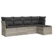 Ta vrtna sedežna garnitura je popoln dodatek za vaše dvorišče, teraso ali verando, saj zagotavlja udoben in vabljiv prostor za klepet z družino in prijatelji ali preprosto za sprostitev in uživanje na prostem. Vzdržljiv material: PE ratan, znan tudi kot poli ratan, je močan sintetični material, ki zahteva malo vzdrževanja in je videti kot naravni ratan. Je lahek, enostaven za čiščenje in se zaradi svoje vzdržljivosti in odpornosti na vremenske vplive pogosto uporablja za zunanje pohištvo.Funkcija shranjevanja z vodoodporno vrečo: Vsak vrtni sedež ima prostor za shranjevanje pod sedežem, skupaj z vodoodporno vrečo za shranjevanje blazin, igrač in drugih predmetov. Notranje vreče imajo zgornjo prevleko in jih je mogoče s pomočjo primenjal varno pritrditi na sedeže za dodatno varnost.Prevleko je mogoče odstraniti in oprati: Te sedežne blazine imajo odstranljive prevleke za lažje pranje in vzdrževanje.Modularna zasnova: Ta komplet zunanjega pohištva ima modularno zasnovo, zaradi česar je popolnoma prilagodljiv in enostaven za premikanje, tako da lahko zunanjo garnituro postavite kakor koli želite. Dobro je vedeti:Če želite, da vaše zunanje pohištvo ostane lepo, vam priporočamo, da ga zaščitite z vodoodporno prevleko.Celotne dimenzije kavča: 234 x 117 x 69 cm (Š x G x V)Dimenzije vodoodporne vreče: 55 x 53 x 34 cm (D x Š x V)Maksimalna nosilnost (na sedež): 110 kgUV-odpornoPlastične nastavljive nogePotrebno sestavljanje: DaKotni sedež:Barva: Svetlo sivaMaterial: PE ratan, jeklen okvir s prašnim premazomDimenzije: 62 x 62 x 69 cm (Š x G x V)Velikost sedeža: 55 x 55 cm (Š x G)Višina sedeža, merjena od tal: 37 cmSrednji sedež:Barva: Svetlo sivaMaterial: PE ratan, jeklen okvir s prašnim premazomDimenzije: 55 x 62 x 69 cm (Š x G x V)Velikost sedeža: 55 x 55 cm (Š x G)Višina sedeža, merjena od tal: 37 cmStolček za noge:Barva: Svetlo sivaMaterial: PE ratan, jeklen okvir s prašnim premazomDimenzije: 55 x 55 x 37 cm (Š x G x V)Blazina:Barva: Temno sivaMaterial prevleke: Tkanina (100 % poliester)Polnilo sedežne blazine: PenaPolnilo hrbtne blazine: bombažna vlaknaDimenzije sedežne blazine: 55 x 55 x 3 cm (Š x G x D)Dimenzije hrbtne blazine: 55 x 45 x 13 cm (D x Š x D)Paket vsebuje:2 x Kotni kavč s funkcijo shranjevanja z vodoodporno vrečo2 x Srednji kavč s funkcijo shranjevanja z vodoodporno vrečo1 x Vrtni stolček za noge6 x Blazina za hrbet5 x Sedežna blazina s snemljivo pralno prevleko