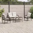 Seti vrtnega pohištva - Vrtna garnitura - Vrtni pohištvo set 4-delna z blazinami rjav poli ratan