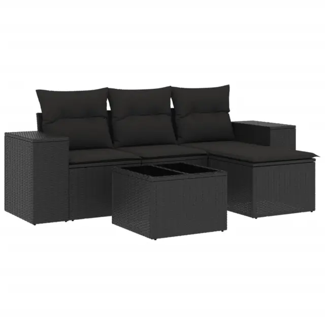 Ta vrtna sedežna garnitura je popoln dodatek za vaše dvorišče, teraso ali verando, saj zagotavlja udoben in vabljiv prostor za klepet z družino in prijatelji ali preprosto za sprostitev in uživanje na prostem. Vzdržljiv material: PE ratan, znan tudi kot poli ratan, je močan sintetični material, ki zahteva malo vzdrževanja in je videti kot naravni ratan. Je lahek, enostaven za čiščenje in se zaradi svoje vzdržljivosti in odpornosti na vremenske vplive pogosto uporablja za zunanje pohištvo.Funkcija shranjevanja z vodoodporno torbo: Vrtno pohištvo ima pod sedežem prostor za shranjevanje, opremljen z vodoodporno torbo za shranjevanje blazin, igrač in drugih stvari. Notranjo torbo je mogoče varno pritrditi na zunanje pohištvo s kavljem in zanko za večjo stabilnost.Steklena mizna plošča: Površina zunanje mize je izdelana iz močnega in trpežnega kaljenega stekla, kar omogoča enostavno čiščenje z vlažno krpo in vašemu zunanjemu prostoru doda pridih elegance.Prevleko je mogoče odstraniti in oprati: Te sedežne blazine imajo odstranljive prevleke za lažje pranje in vzdrževanje.Modularna zasnova: Ta komplet zunanjega pohištva ima modularno zasnovo, zaradi česar je popolnoma prilagodljiv in enostaven za premikanje, tako da lahko zunanjo garnituro postavite kakor koli želite. Dobro je vedeti:Če želite, da vaše zunanje pohištvo ostane lepo, vam priporočamo, da ga zaščitite z vodoodporno prevleko.Maksimalna nosilnost (na sedež): 110 kgUV-odpornoPlastične nastavljive nogePotrebno sestavljanje: DaSrednji sedež:Barva: ČrnaMaterial: PE ratan, jeklen okvir s prašnim premazomDimenzije: 55 x 62 x 69 cm (Š x G x V)Velikost sedeža: 55 x 55 cm (Š x G)Višina sedeža, merjena od tal: 37 cmKavč z naslonjali za roke:Barva: ČrnaMaterial: PE ratan, jeklen okvir s prašnim premazomDimenzije: 83 x 62 x 69 cm (Š x G x V)Velikost sedeža: 55 x 55 cm (Š x G)Višina sedeža, merjena od tal: 37 cmVišina naslonjal za roke od tal: 55 cmMiza:Barva: ČrnaMaterial: PE ratan, jeklo s prašnim premazom, kaljeno stekloDimenzije: 55 x 55 x 37 cm (D x Š x V)Stolček za noge:Barva: ČrnaMaterial: PE ratan, jeklen okvir s prašnim premazomDimenzije: 55 x 55 x 37 cm (Š x G x V)Blazina:Barva: ČrnaMaterial prevleke: Tkanina (100 % poliester)Polnilo sedežne blazine: PenaPolnilo hrbtne blazine: bombažna vlaknaDimenzije sedežne blazine: 55 x 55 x 3 cm (Š x G x D)Dimenzije hrbtne blazine: 55 x 45 x 13 cm (D x Š x D)Paket vsebuje:1 x Vrtna miza1 x Srednji kavč s funkcijo shranjevanja z vodoodporno vrečo2 x Kavč s funkcijo shranjevanja z vodoodporno vrečo1 x Stolček za noge s funkcijo shranjevanja z vodoodporno vrečo3 x Blazina za hrbet4 x Sedežna blazina s snemljivo in pralno prevleko