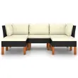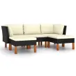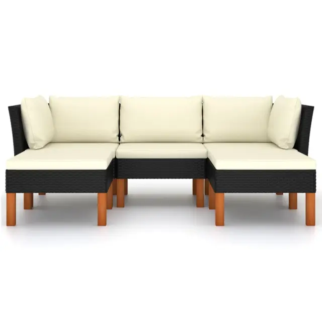 Ta stilska in udobna vrtna sedežna garnitura je idealna izbira za sproščanje in uživanje v vremenu, dremanje ali klepetanje z družino ali prijatelji. Sedežna garnitura s prašno premazanim jeklenim okvirjem je oblečena v PE ratan, zato je vremensko odporna in preprosta za čiščenje. Noge iz trdnega evkaliptusa prispevajo k trdnosti in stabilnosti. Sedežna garnitura je dostavljena z debelo podloženimi blazinami za izjemno udobje. Prevleka za blazino z zadrgo je odstranljiva in pralna. To zunanjo sedežno garnituro lahko brez težav premikate, saj je zelo lahka. Opomba: Če želite podaljšati življenjsko dobo svojega vrtnega pohištva, priporočamo redno čiščenje. Pohištva ne puščajte na prostem brez zaščite.Čiščenje: Uporabite blago milnico.Shranjevanje: Če je mogoče, shranite v hladnem in suhem notranjem prostoru. Če bo izdelek shranjen zunaj, ga zaščitite z vodoodpornim pokrivalom. Po dežju ali snegu odstranite odvečno vodo ali sneg z ravnih površin. Omogočite zadosten pretok zraka, da preprečite poškodbe povezane z vlago.Barva: ČrnaBarva blazine: Kremno belaMaterial: PE ratan, prašno premazano jeklo, trden evkaliptusov les z oljnim premazomMaterial blazine: Tkanina (100 % poliester)Dimenzije srednjega kavča: 60,5 x 64,5 x 67 cm (Š x G x V)Dimenzije kotnega kavča: 64,5 x 64,5 x 67 cm (Š x G x V)Dimenzije naslonjala za noge: 60 x 60 x 32 cm (Š x G x V)Globina sedeža: 55,5 cmVišina sedeža, merjena od tal: 32 cmDebelina blazine za sedež: 5 cmPotrebno sestavljanje: DaPaket vsebuje:2 x Kotni kavč1 x Sredinski kavč2 x Stolček za noge5 x Blazina za sedež5 x Blazina za hrbet