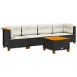 Seti vrtnega pohištva - Vrtna garnitura - Vrtni pohištvo set 5-delna z blazinami črn poli ratan