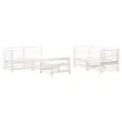 Ta lesena vrtna sedežna garnitura, ki jo odlikujejo letve, bo odličen dodatek za vaš vrt, verando ali teraso za prijetno druženje z družino ali prijatelji. Trdna borovina: Trdna borovina je čudovit naravni material. Borovina ima ravne vzorce, grče pa dajejo materialu njegov značilen, rustikalen videz.Vzdržljiv in stabilen okvir: Leseni okvirji zagotavljajo trdnost sedežne garniture za vsakodnevno uporabo na prostem.Modularna zasnova: Sedežna garnitura je prilagodljiva in enostavna za premikanje. Kombinirate jo lahko z drugimi modularnimi segmenti v spletni trgovini ter tako ustvarite vrtno sedežno garnituro po lastnih željah! Dobro je vedeti:Če želite, da vaše zunanje pohištvo ostane lepo, vam priporočamo, da ga zaščitite z vodoodporno prevleko.Blazine niso vključene v dobavo.Barva: BelaMaterial: Trdna borovinaMaterial letvic: Vezan lesDimenzije kotnega kavča: 63,5 x 63,5 x 60 cm (Š x G x V)Dimenzije sredinskega kavča: 57,5 x 63,5 x 60 cm (Š x G x V)Dimenzije vrtnega stolčka/klubske mizice: 57,5 x 57,5 x 30 cm (Š x G x V)Maksimalna nosilnost (na sedež): 110 kgPotrebno sestavljanje: DaPaket vsebuje:3 x Kotni kavč1 x Sredinski kavč2 x Stolček za noge/klubska mizica Največ 110 kg na sedež.