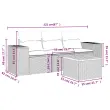 Ta vrtna sedežna garnitura je popoln dodatek za vaše dvorišče, teraso ali verando, saj zagotavlja udoben in vabljiv prostor za klepet z družino in prijatelji ali preprosto za sprostitev in uživanje na prostem. Vzdržljiv material: PE ratan, znan tudi kot poli ratan, je močan sintetični material, ki zahteva malo vzdrževanja in je videti kot naravni ratan. Je lahek, enostaven za čiščenje in se zaradi svoje vzdržljivosti in odpornosti na vremenske vplive pogosto uporablja za zunanje pohištvo. Funkcija shranjevanja z vodoodporno vrečo: Vsak vrtni sedež ima prostor za shranjevanje pod sedežem, skupaj z vodoodporno vrečo za shranjevanje blazin, igrač in drugih predmetov. Notranje vreče imajo zgornjo prevleko in jih je mogoče s pomočjo primenjal varno pritrditi na sedeže za dodatno varnost. Stabilna mizna plošča, ki je enostavna za čiščenje: Ta vrtna miza ima ploščo iz akacijevega lesa, ki je čvrsta, vzdržljiva in jo je enostavno čistiti z vlažno krpo. Udobno sedenje: To zunanje pohištvo z debelo oblazinjenimi blazinami zagotavlja udobno sedenje. Modularna zasnova: Ta komplet zunanjega pohištva ima modularno zasnovo, zaradi česar je popolnoma prilagodljiv in enostaven za premikanje, tako da lahko zunanjo garnituro postavite kakor koli želite. Dobro je vedeti:Če želite, da vaše zunanje pohištvo ostane lepo, vam priporočamo, da ga zaščitite z vodoodporno prevleko.Maksimalna nosilnost (na sedež): 110 kgUV-odpornoPotrebno sestavljanje: DaSrednji sedež:Barva: SivaMaterial: PE ratan, jeklen okvir s prašnim premazomDimenzije: 55 x 62 x 69 cm (Š x G x V)Velikost sedeža: 55 x 55 cm (Š x G)Višina sedeža, merjena od tal: 37 cmKavč z naslonjali za roke:Barva: SivaMaterial: PE ratan, jeklen okvir s prašnim premazomDimenzije: 83 x 62 x 69 cm (Š x G x V)Velikost sedeža: 55 x 55 cm (Š x G)Višina sedeža, merjena od tal: 37 cmVišina naslonjal za roke od tal: 55 cmMiza:Barva: SivaMaterial: PE ratan, prašno premazano jeklo, trden akacijev les z oljnim premazomDimenzije: 55 x 55 x 37 cm (D x Š x V)Blazina:Barva: Temno sivaMaterial prevleke: Tkanina (100 % poliester)Polnilo sedežne blazine: PenaPolnilo hrbtne blazine: bombažna vlaknaDimenzije sedežne blazine: 55 x 55 x 3 cm (Š x G x D)Dimenzije hrbtne blazine: 55 x 45 x 13 cm (D x Š x D)Paket vsebuje:1 x Srednji kavč s funkcijo shranjevanja z vodoodporno vrečo2 x Kavč s funkcijo shranjevanja z vodoodporno vrečo1 x Vrtna miza3 x Blazina za hrbet6 x Sedežna blazina s snemljivo pralno prevleko