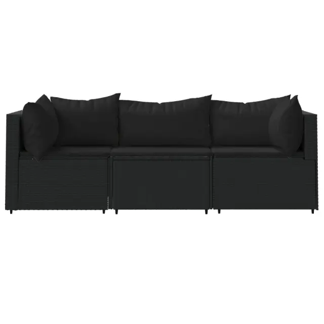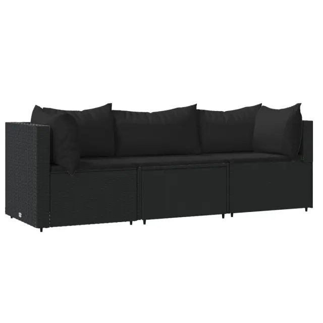 Seti vrtnega pohištva - Vrtna garnitura - Vrtni pohištvo set 3-delna z blazinami črn poli ratan