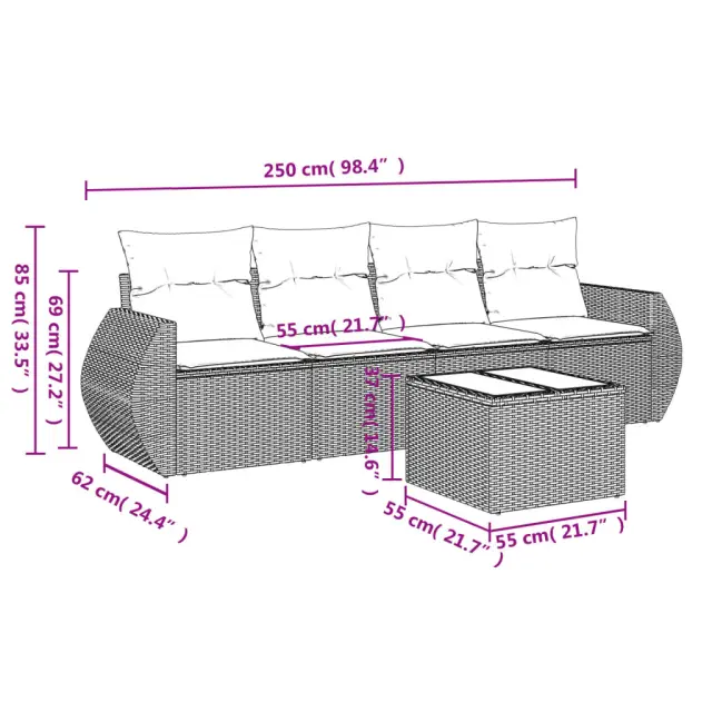 Ta vrtna sedežna garnitura je popoln dodatek za vaše dvorišče, teraso ali verando, saj zagotavlja udoben in vabljiv prostor za klepet z družino in prijatelji ali preprosto za sprostitev in uživanje na prostem. Vzdržljiv material: PE ratan, znan tudi kot poli ratan, je močan sintetični material, ki zahteva malo vzdrževanja in je videti kot naravni ratan. Je lahek, enostaven za čiščenje in se zaradi svoje vzdržljivosti in odpornosti na vremenske vplive pogosto uporablja za zunanje pohištvo.Steklena mizna plošča: Površina zunanje mize je izdelana iz močnega in trpežnega kaljenega stekla, kar omogoča enostavno čiščenje z vlažno krpo in vašemu zunanjemu prostoru doda pridih elegance. Udobno sedenje: To zunanje pohištvo z debelo oblazinjenimi blazinami zagotavlja udobno sedenje. Prevleko je mogoče odstraniti in oprati: Te sedežne blazine imajo odstranljive prevleke za lažje pranje in vzdrževanje.Modularna zasnova: Ta komplet zunanjega pohištva ima modularno zasnovo, zaradi česar je popolnoma prilagodljiv in enostaven za premikanje, tako da lahko zunanjo garnituro postavite kakor koli želite. Dobro je vedeti:Če želite, da vaše zunanje pohištvo ostane lepo, vam priporočamo, da ga zaščitite z vodoodporno prevleko.Maksimalna nosilnost (na sedež): 110 kgUV-odpornoPotrebno sestavljanje: DaSrednji sedež:Barva: RjavaMaterial: PE ratan, jeklen okvir s prašnim premazomDimenzije: 55 x 62 x 69 cm (Š x G x V)Velikost sedeža: 55 x 55 cm (Š x G)Višina sedeža, merjena od tal: 37 cmKavč z naslonjali za roke:Barva: RjavaMaterial: PE ratan, jeklen okvir s prašnim premazomDimenzije: 70 x 62 x 69 cm (Š x G x V)Velikost sedeža: 55 x 55 cm (Š x G)Višina sedeža, merjena od tal: 37 cmVišina naslonjal za roke od tal: 55 cmMiza:Barva: RjavaMaterial: PE ratan, jeklo s prašnim premazom, kaljeno stekloDimenzije: 55 x 55 x 37 cm (D x Š x V)Blazina:Barva: Kremno belaMaterial prevleke: Tkanina (100 % poliester)Polnilo sedežne blazine: PenaPolnilo hrbtne blazine: bombažna vlaknaDimenzije sedežne blazine: 55 x 55 x 3 cm (Š x G x D)Dimenzije hrbtne blazine: 55 x 45 x 13 cm (D x Š x D)Paket vsebuje:2 x Sredinski sedež2 x Kavč z naslonjalom za roke1 x Vrtna miza4 x Blazina za hrbet4 x Sedežna blazina s snemljivo in pralno prevleko